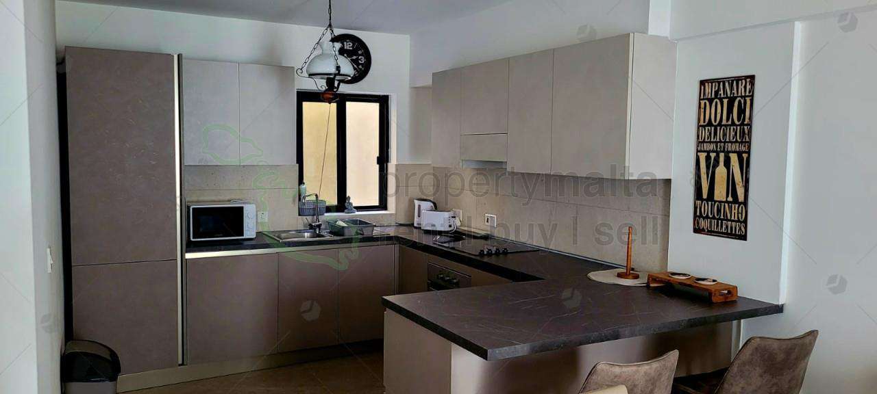 Well-furnished three-bedroom apartment very centrally located just minutes away from the picturesque Spinola Bay. The property comprises a well-sized open plan kitchen/living/dining, two double bedrooms (main with en suite), a single bedroom, a shower, and laundry/box room. Extras include a washing machine, dryer, and dishwasher. The property is fully air-conditioned and served with a lift. Complimenting this property is a lock-up garage.