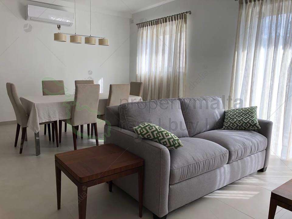 A beautifully appointed, modern, three-bedroom apartment enjoying a square layout. The property comprises an open-plan kitchen with a breakfast bar, dining/living area leading onto a balcony enjoying side sea views, two double bedrooms, a single bedroom, back balcony, main ensuite, family bathroom. Fully equipped and airconditioned.