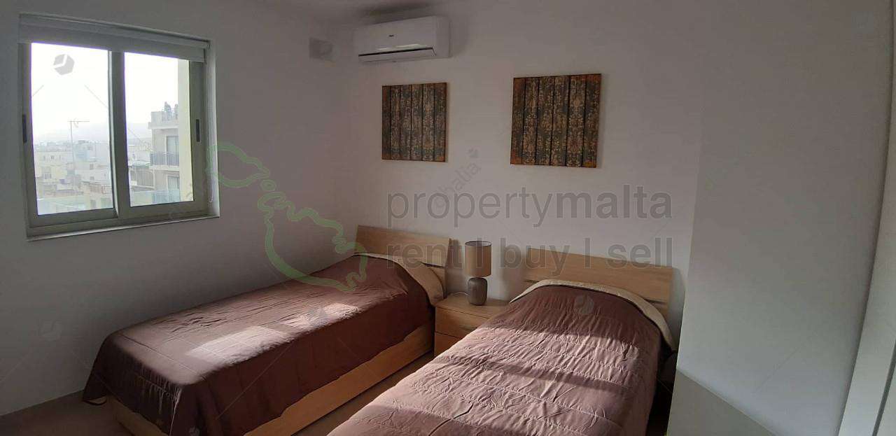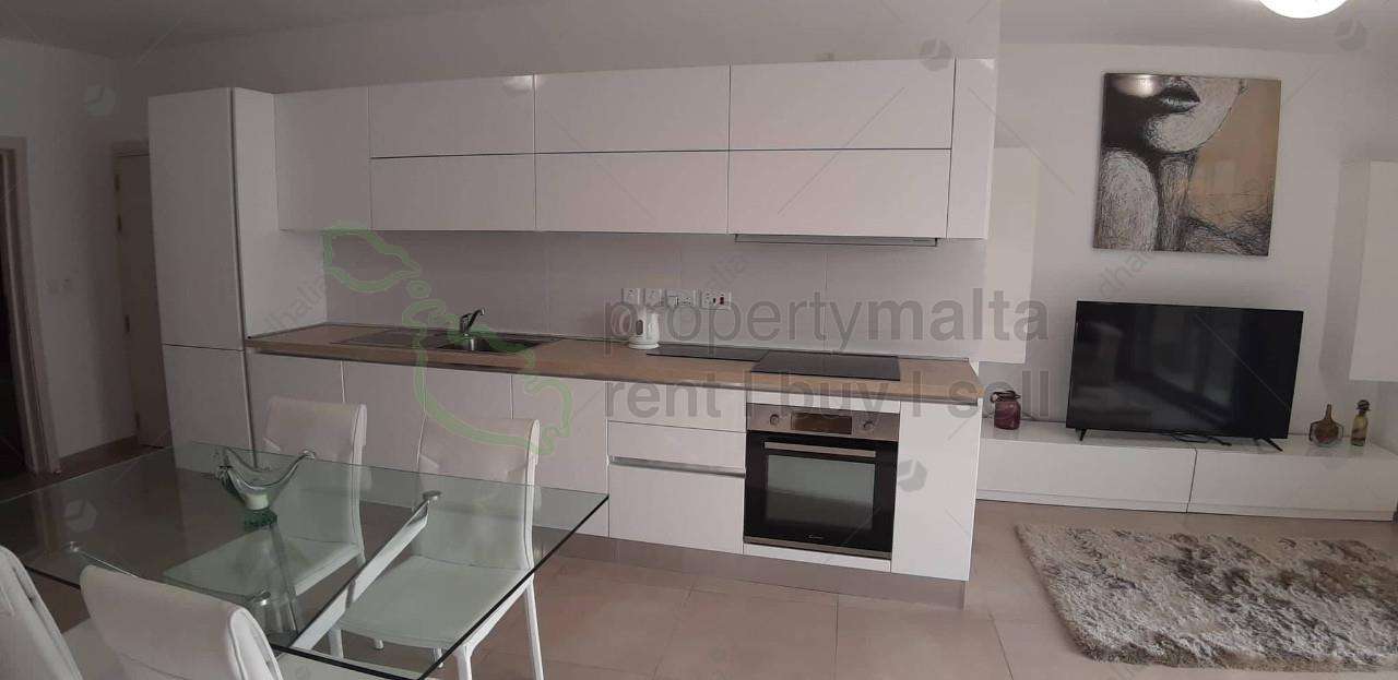 A highly finished and fully equipped two bedroomed apartment ideally located in St Pauls Bay very close to the sea and all amenities. The property consists of a spacious open-plan kitchen/living/ding area, main bedroom with ensuite bathroom, a double bedroom, main bathroom and a front terrace with distant views of Wardija. The apartment is fully airconditioned and also features a small back terrace. A must see!