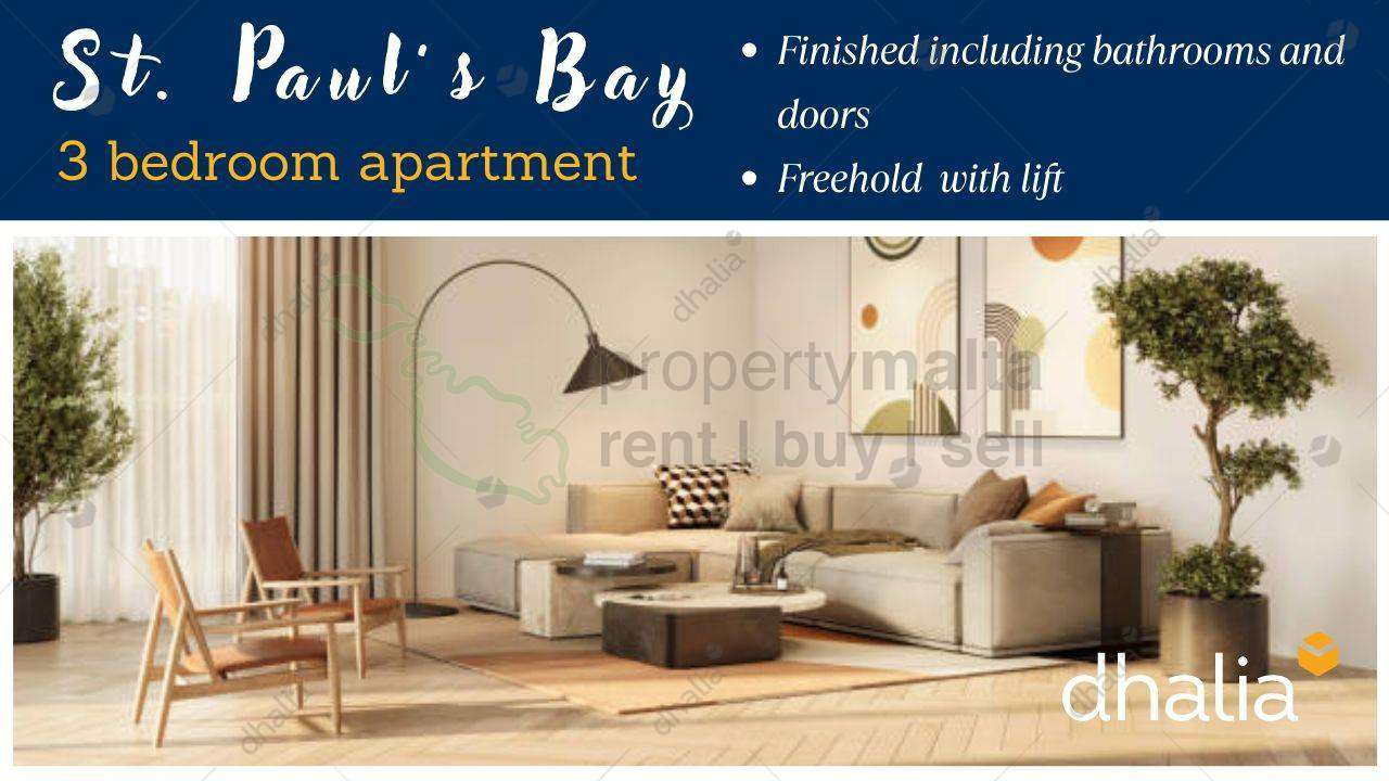 Located in a sought-after area of St Paul’s Bay, just two streets away from Ta’ l-Ghazzenin Bay and close to all amenities, is this newly built first-floor apartment, offered fully finished including bathrooms and internal doors. The layout comprises an open-plan kitchen/living/dining area, a main bathroom, and three bedrooms. The main bedroom includes an ensuite shower and a back balcony. Optional garages are available at an additional cost.
