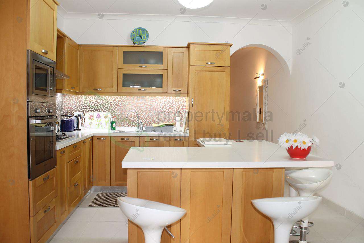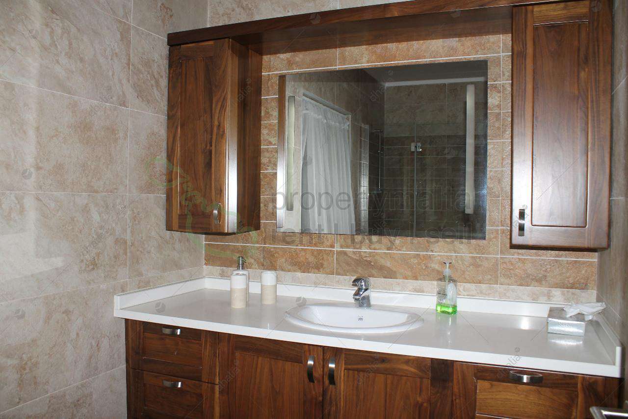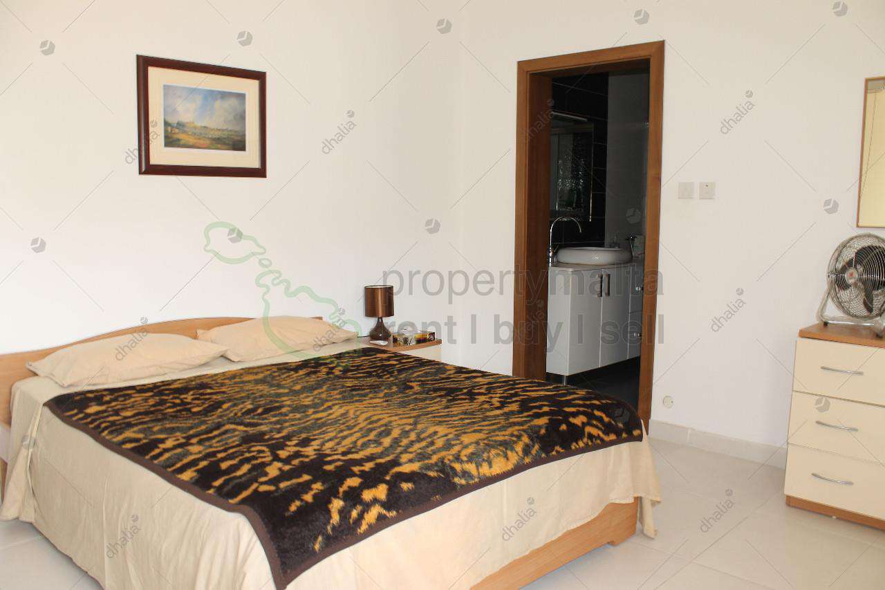 A very neat large apartment consisting of three double bedrooms, two bathrooms (main en-suite with a shower) a washroom with a washing machine leading off the main bedroom, a small study, and a back balcony. The third bedroom has three single beds. The kitchen/dining/lounge is open plan leading onto a very nice terrace ideal for sundowners! A garage space is also available.