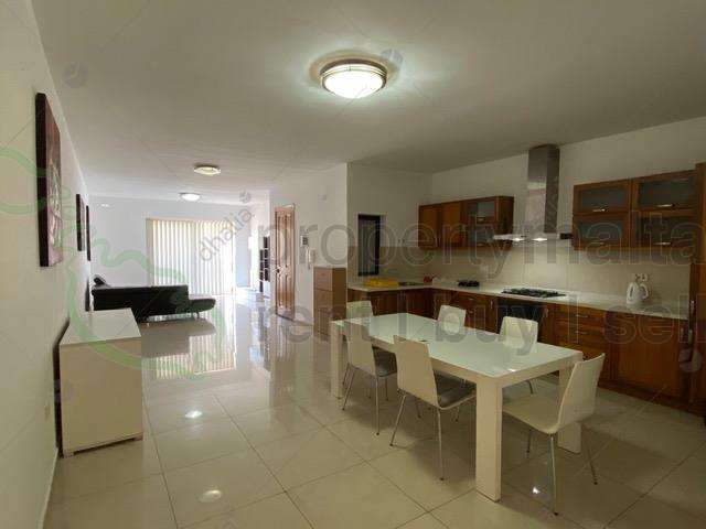 A bright three-bedroom apartment featuring a main bedroom with ensuite and a guest toilet. The property is complemented by an interconnected semi-basement two-car garage, available optionally at an additional €120 per month.
