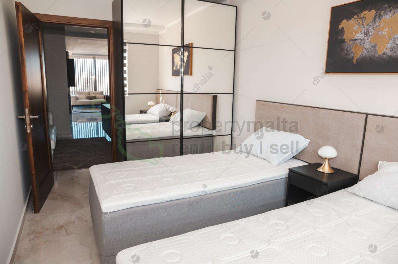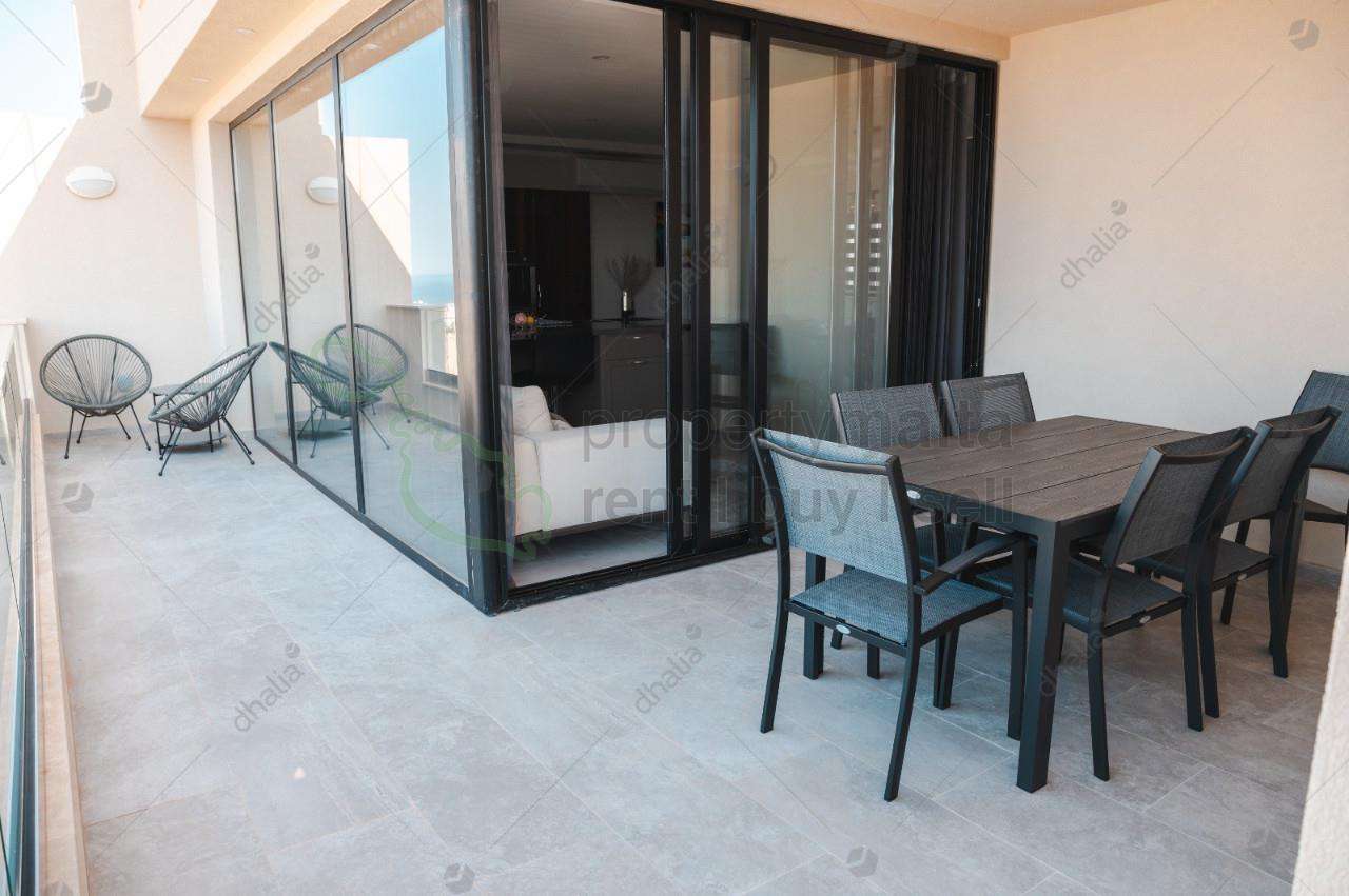 A new, 107sqm fifth-floor fully-furnished apartment situated on high grounds in Ta` l-Ibrag on a quiet residential road. Forming part of a small and well-kept apartment-block, the property comprises two double bedrooms, a good-sized fitted kitchen/living/dining leading to a wide front terrace enjoying partial open views, en-suite shower, main bathroom, back balcony. The new furniture, fitted-kitchen, appliances, fixtures and other fittings are all of a high standard/quality. Served with passenger lift. As the property is situated on two roads, it internally enjoys an abundance of natural light. An optional underlying one-car parking space is available. Being sold on a Freehold basis. Contact us for a viewing appointment.