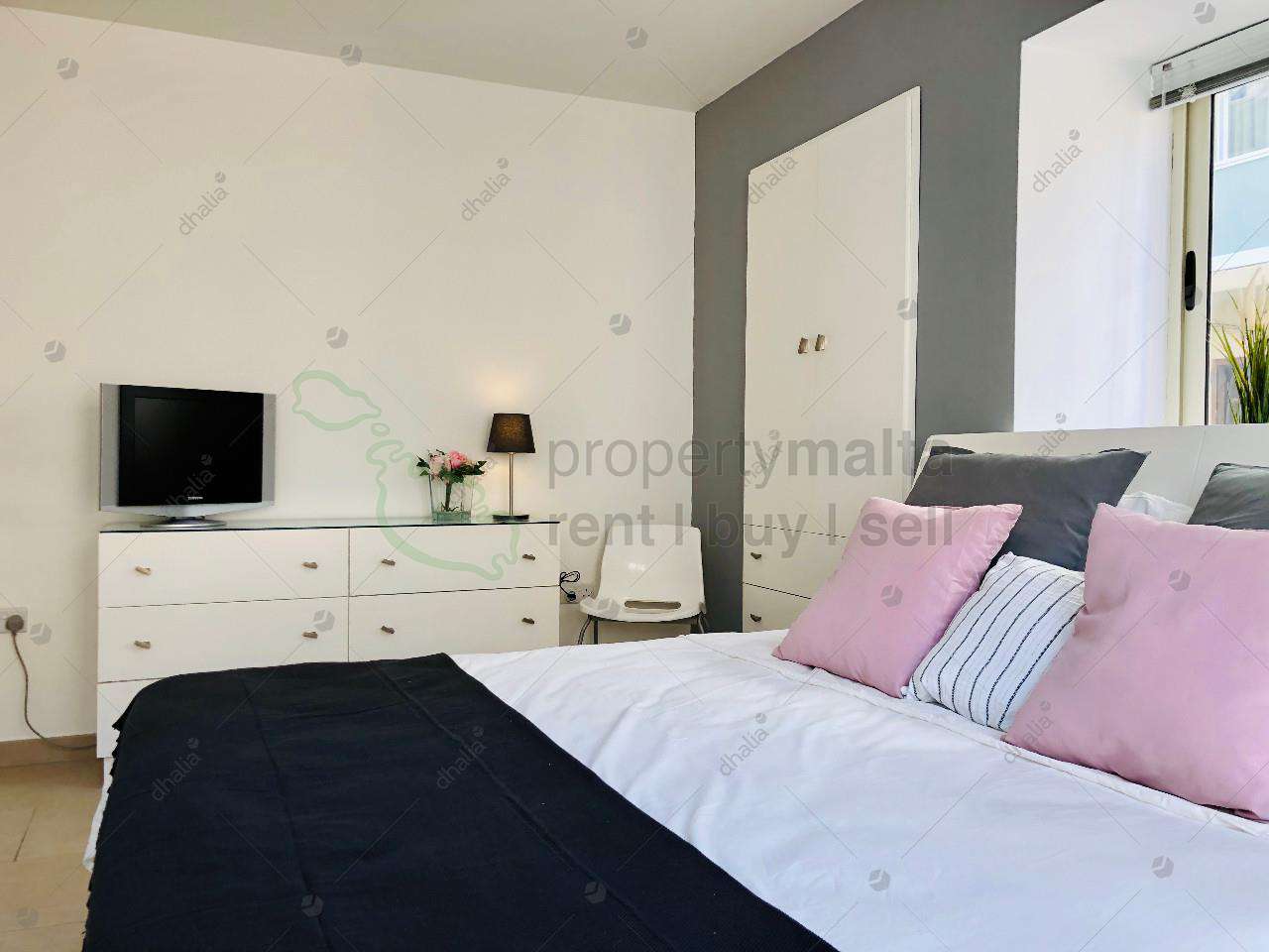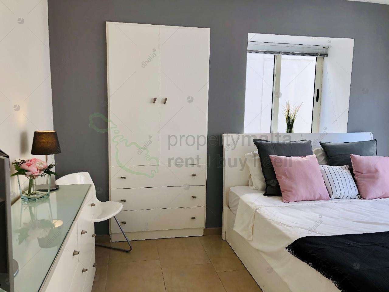 Modern and larger than usual second-floor, three bedroom corner apartment, situated in Ta’ Xbiex and within walking distance to the strand Seafront. Accommodation comprises of a bright and spacious layout, with a very large open plan kitchen/dining/living area, two double bedrooms, the main bathroom, a laundry room, and a study (which can be converted into a third bedroom). This property is ready to move into, fully equipped and air conditioned. Served with lift.