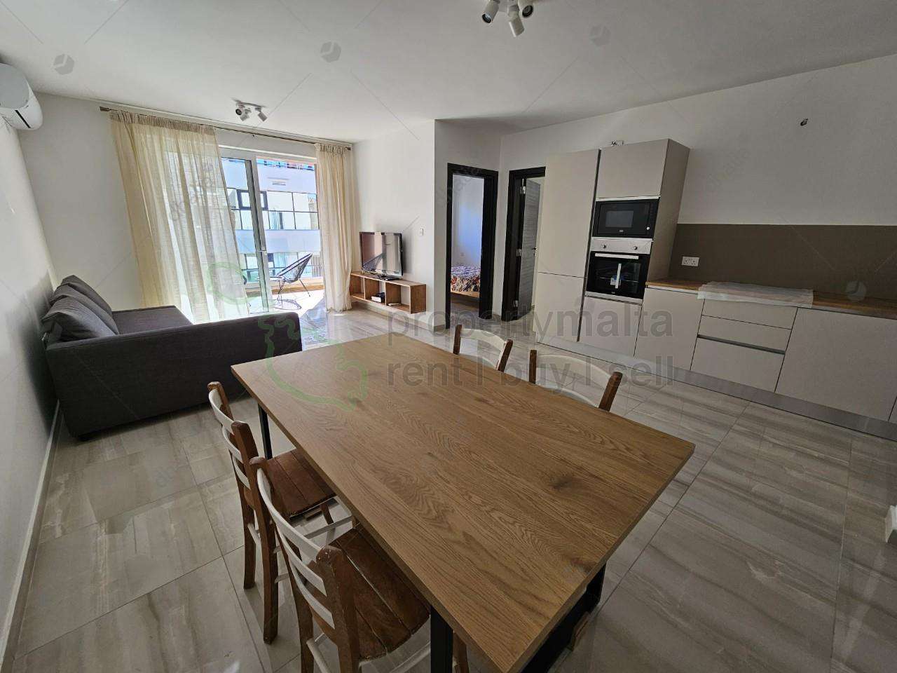 A luxuriously finished and furnished two-bedroom, fifth-floor apartment situated in Ta` Xbiex enjoying side sea views. The layout comprises an open plan kitchen/living and dining area leading onto a balcony, the main bedroom including ensuite facilities and another balcony, the main bathroom, a second bedroom and a washroom. Fully equipped!