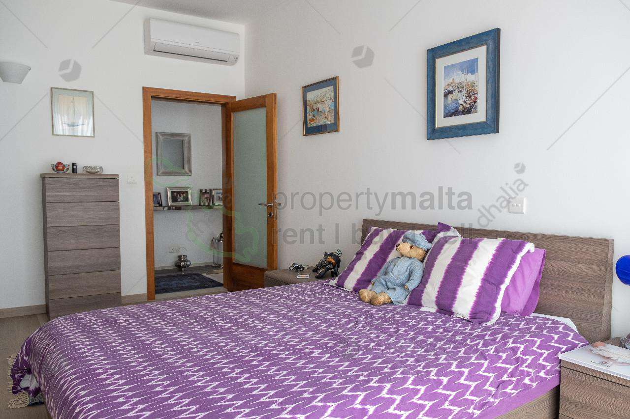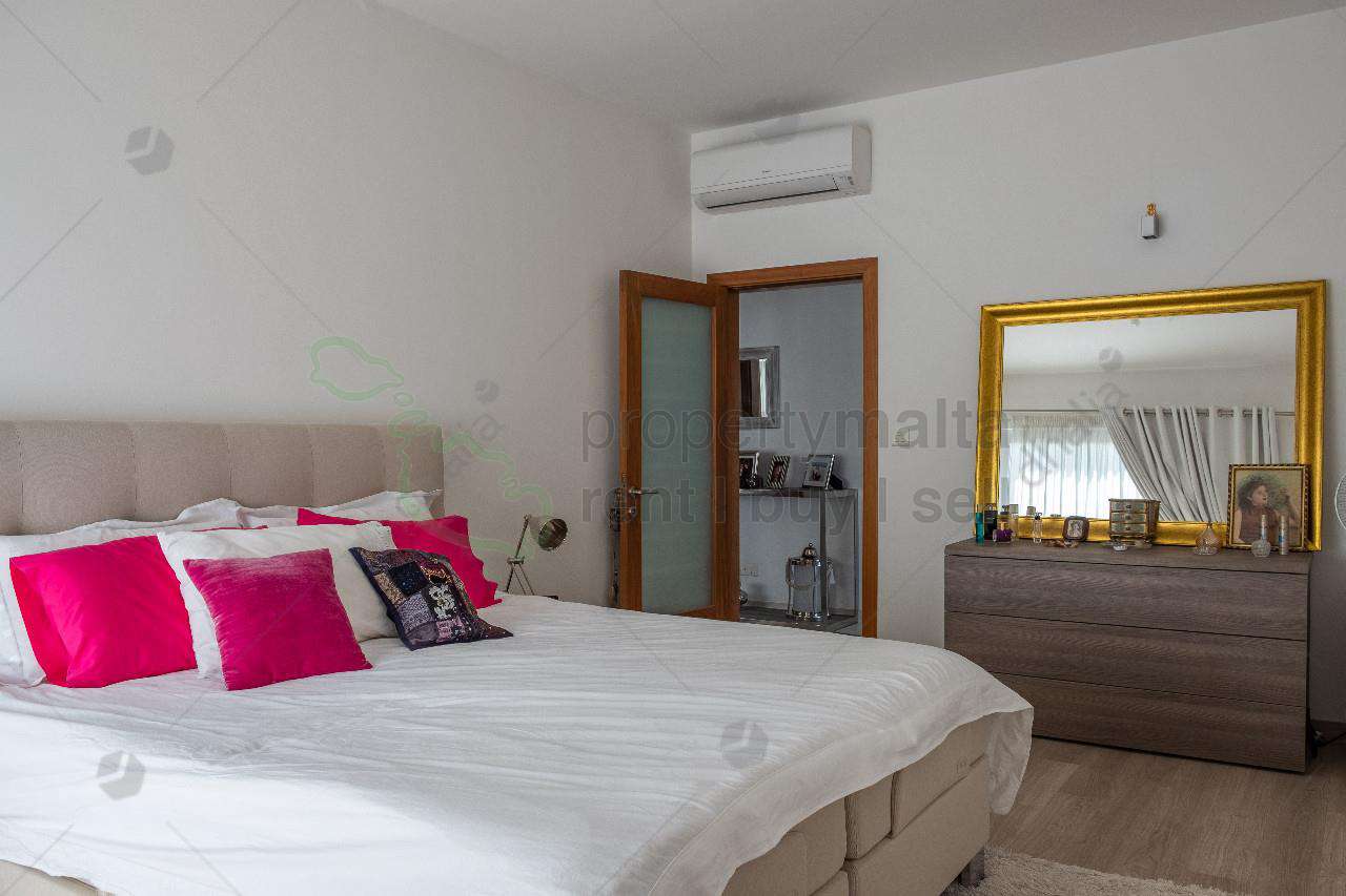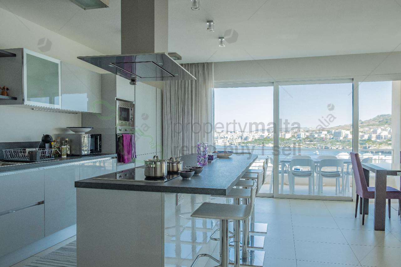Luxurious, bright and airy apartment in Xemxija, finished to very high standards enjoying spectacular unspoilt sea views. The property consists of a large open-plan kitchen with dishwasher and breakfast bar/dining/living area leading to a front terrace, three double bedrooms, ensuite shower room and main bathroom. Fully equipped and airconditioned throughout. Interconnecting one-car lock-up garage included.