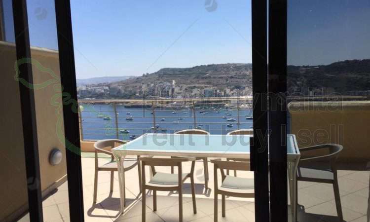 Modern two double bedroom apartment situated on the fourth floor offering outstanding panoramic sea views of Xemxija Bay. Impeccably finished and beautifully furnished with two bathrooms (main ensuite), a wide entrance leading to a tasteful open plan kitchen/dining/living area flowing onto a seafront terrace with ample space for entertaining.