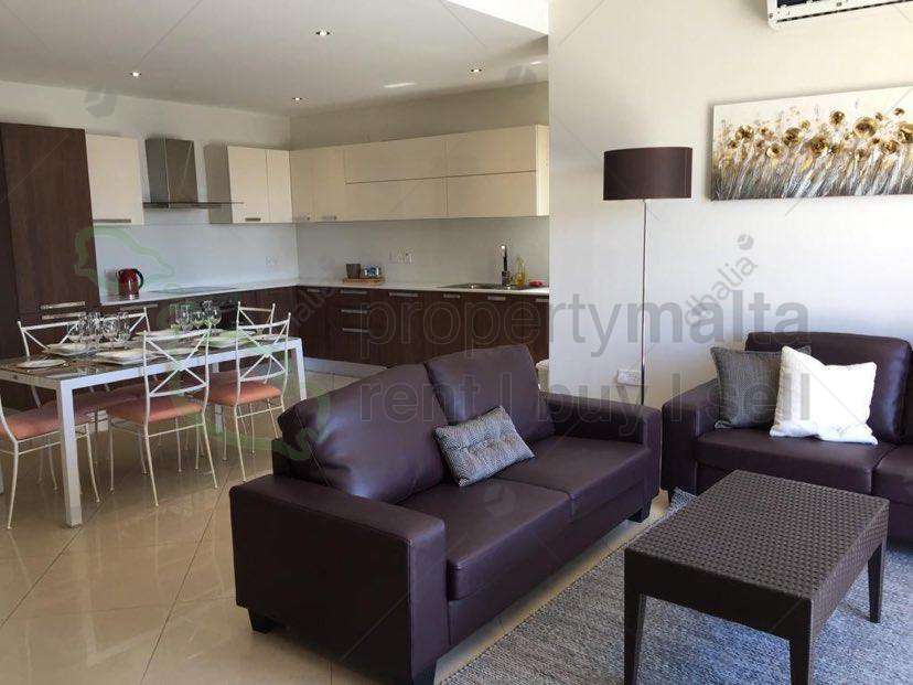 Modern two double bedroom apartment situated on the fourth floor offering outstanding panoramic sea views of Xemxija Bay. Impeccably finished and beautifully furnished with two bathrooms (main ensuite), a wide entrance leading to a tasteful open plan kitchen/dining/living area flowing onto a seafront terrace with ample space for entertaining.