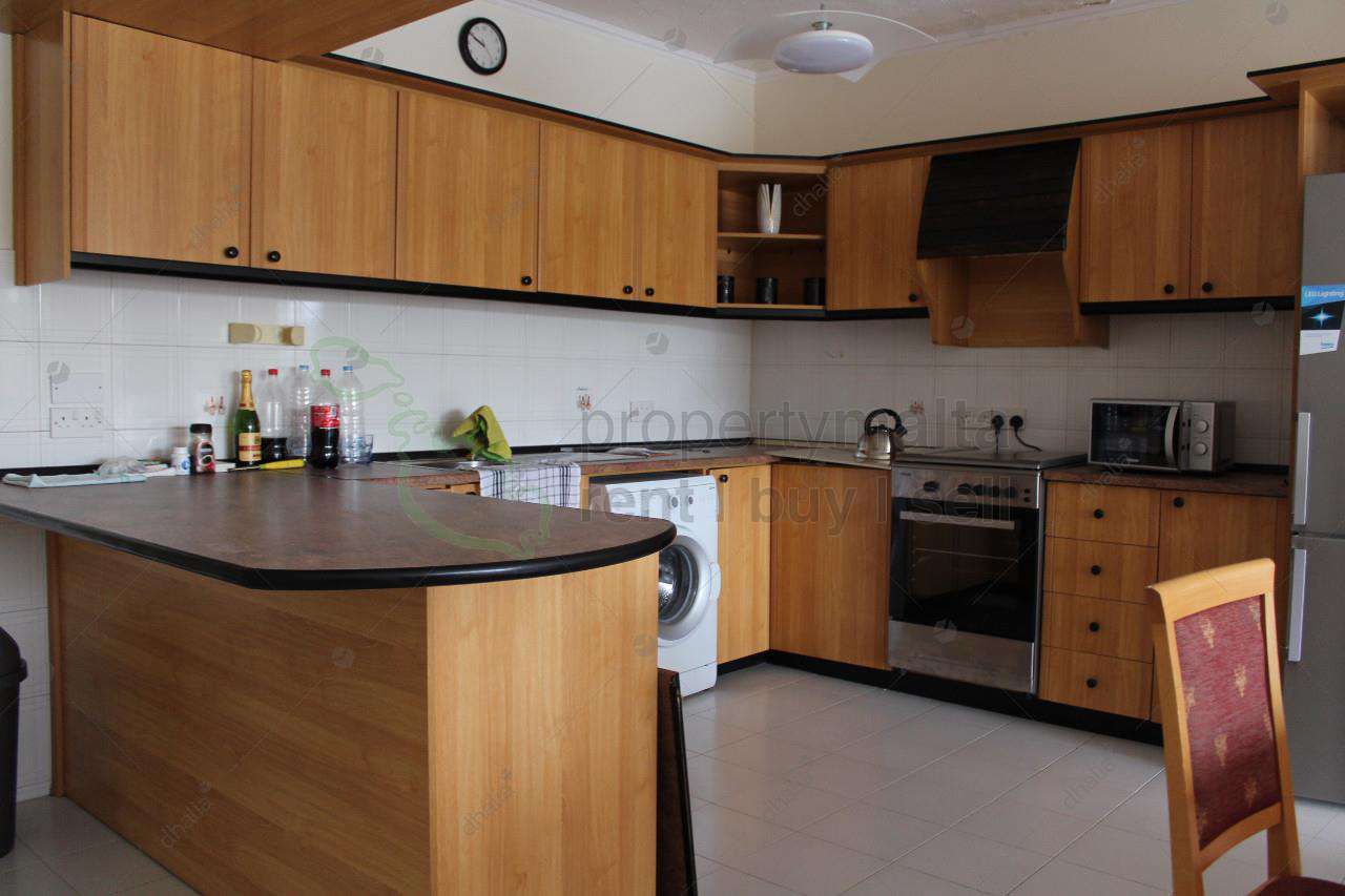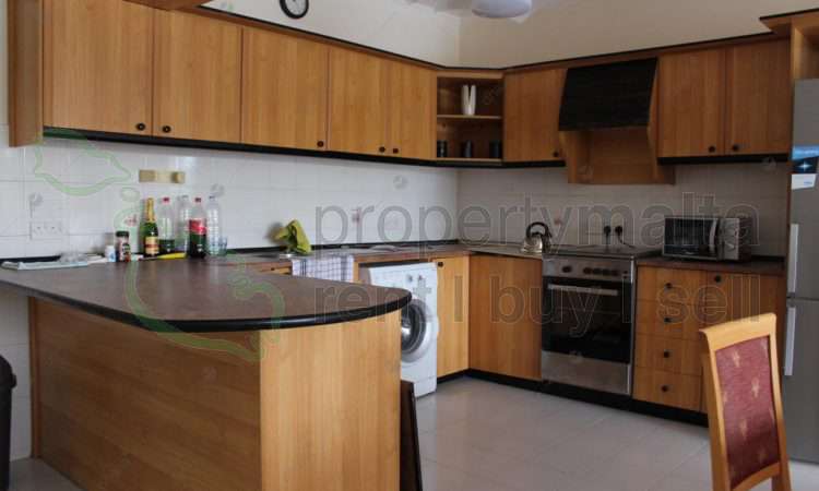 A spacious three double bedroom apartment with one full bathroom, plus another separate toilet, a large open plan kitchen/dining/living area flowing onto a balcony with spectacular views over Xemxija Bay. Ideal family home.