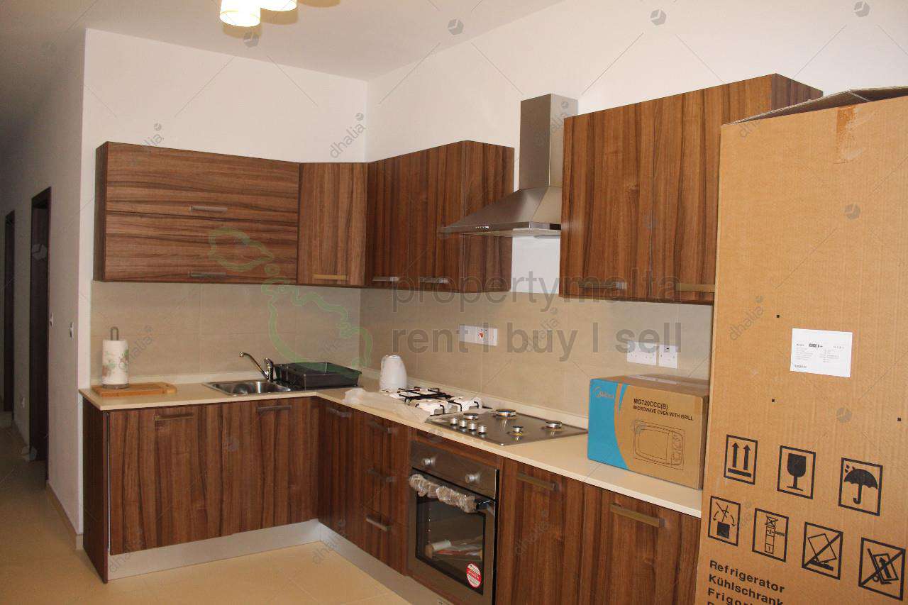 Brand new and luxuriously furnished third floor apartment. Layout is in the form of a spacious open plan dining/living combined with a fully equipped kitchen. Two front balconies, master bedrooms with en suite, another two single bedroom, main bathroom, two back balconies and a back storage.