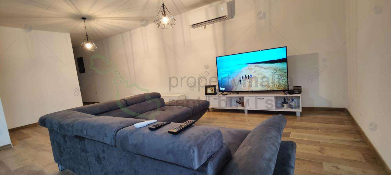 Luxuriously finished brand new apartment set on the second floor, situated in a quiet residential area close to all amenities. The layout consists of an open-plan kitchen/living/dining area with a large front terrace, bathroom, two double bedrooms, main with ensuite, a single bedroom and a back balcony. Offered fully equipped and fully air-conditioned.