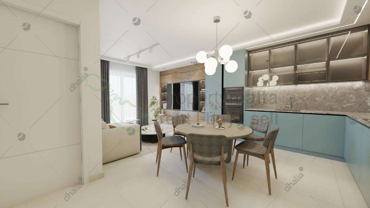 A third-floor, two-bedroom apartment is currently under construction and expected to be completed by June 2026. The property is being offered highly finished, excluding bathrooms and internal doors. The accommodation layout measures approximately 90 square metres and consists of an open-plan kitchen, living, dining, two bedrooms, bathroom, ensuite shower, and front balcony.