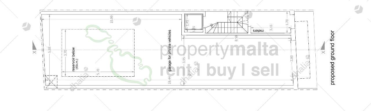 On plan, a street-level garage measuring circa 95 square metres located underneath a small block of four units. Property will be sold in shell form and completed in 2027. Freehold.