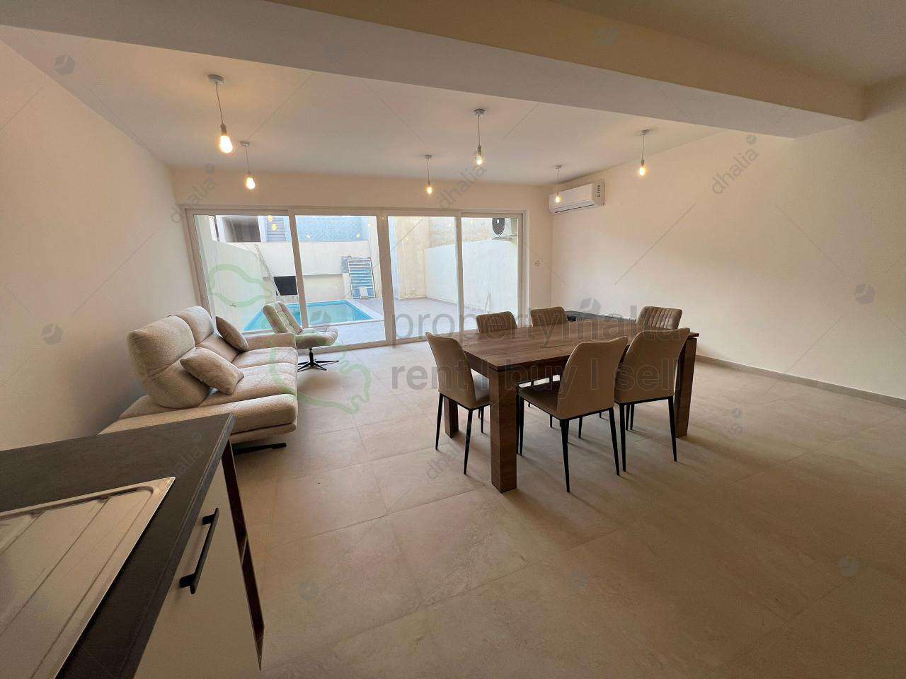 Brand new ground-floor maisonette for rent in the tranquil village of Kercem. This spacious property features three double bedrooms and two modern bathrooms, finished to high standards throughout. Enjoy a private pool, ideal for outdoor living and entertaining, along with a private garage. Fully equipped with contemporary finishes and designed for comfort, this is an excellent opportunity to rent a stylish home in a peaceful yet convenient location.