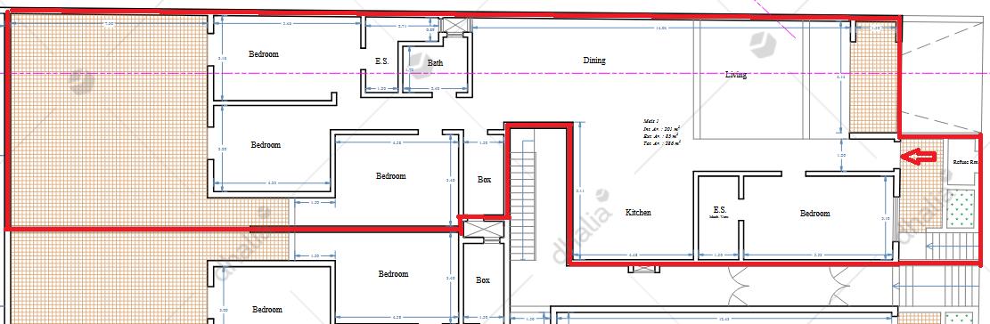 A large elevated ground-floor three- bedroom maisonette measuring aprox 286 square metres. Layout comprises a front patio leading to a a large open plan kitchen/living/dining area (approx 80 square metres) leading to a front terrace, main bathroom, box room, master bedroom with ensuite, another two double bedrooms and a larger than usual backyard of 55square metres. Optional garages available.