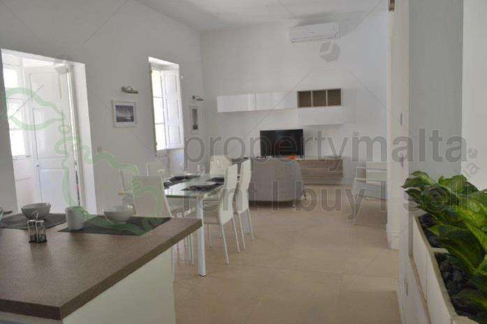 Set in the heart of Sliema, two minutes walk from the Ferries is this first-floor, duplex maisonette forming part of an old townhouse retaining all the features and character on the facade, yet newly built on the inside. One enters a lovely entrance hall leading to the spacious open plan kitchen/living/dining area, which in turn leads to the backyard, ideal for outdoor entertaining, two double bedrooms, both with ensuite, a third bedroom, guest toilet and bathroom, boxroom. Finishings are of the highest quality with no expense spared, designed by one of Malta`s leading designers. Strongly recommended.