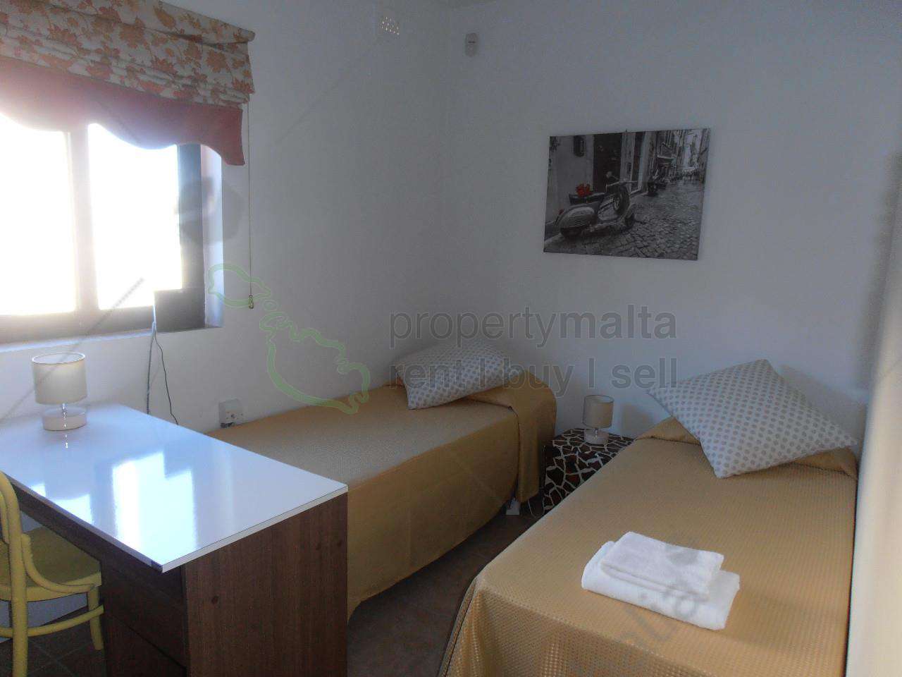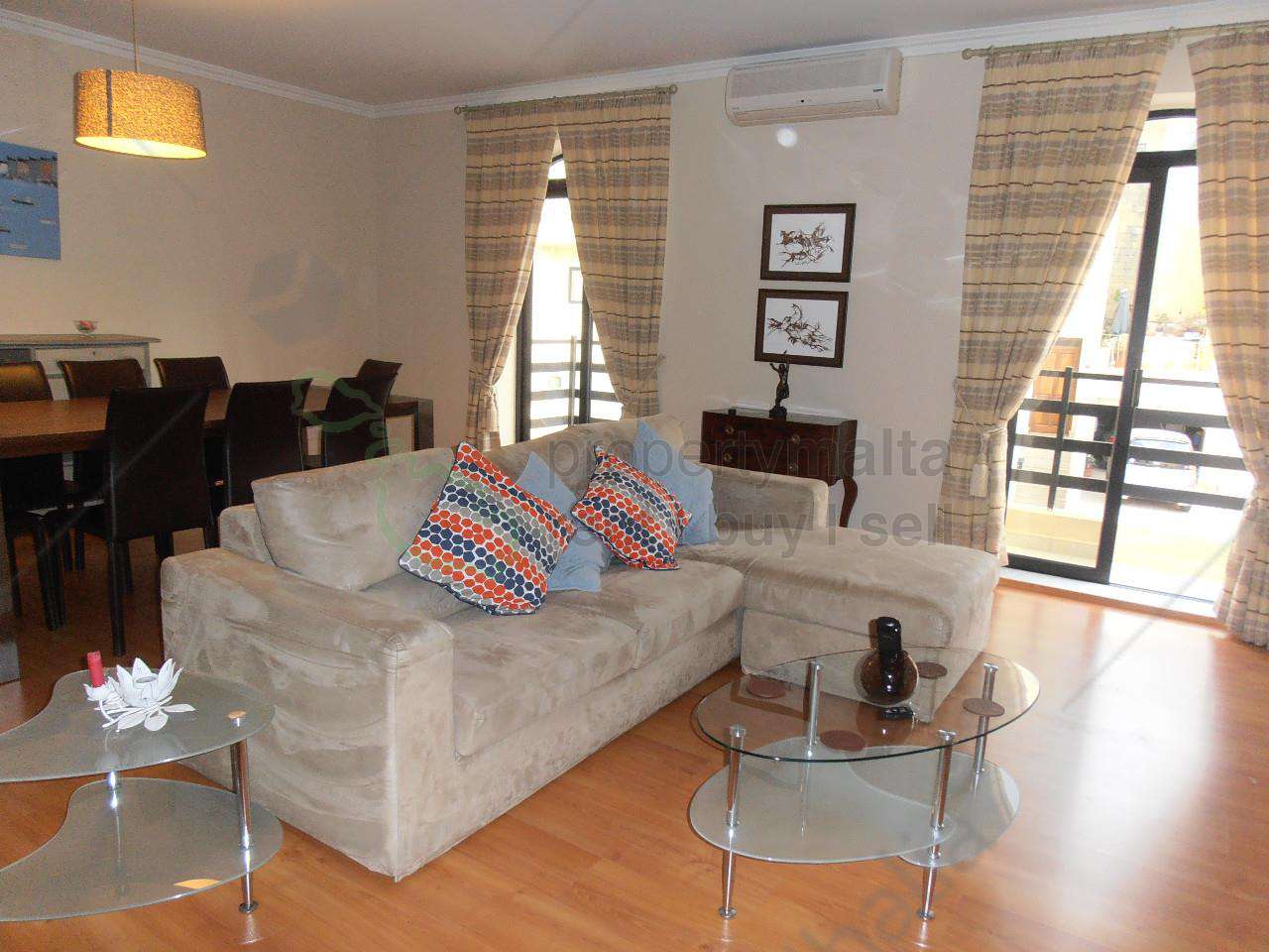 Very well finished two bedroom Maisonette located in a quiet area of St Julian`s. Property comprises of a small entrance hall leading to a bright living/dining area, separate fitted kitchen filled with all modern day appliances and a dishwasher. Master bedroom with modern flooring, another double bedroom and a single bedroom. There is also a sofa bed for guests in the living room. Further there is a bathroom, shower room and laundry room. Property has air conditioning in all rooms and also has large front and back balconies.