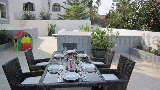 An absolutely stunning and luxurious 7 bedroom villa, tastefully finished with all modern comforts, located in a prime position of this prestigious area taking in breathtaking of the unobstructed views of the Mediterrean blue sea. Accomodates comfortably 10 persons max to 18 or more. Very bright and spacious accomodation comprises of a welcoming hall, fully equipped modern kitchen combined with 50 inch TV/Lounge area, dining area having a wide fronted terrace overlooking pool and unobstructed sea view. 7 bedrooms, (2 Master bedrooms with ensuite), 3 bathrooms, games room, childrens play area, a large sized swimming pool with jacuzzi, outdoor dining and BBQ area. A wide fronted roof terrace for al fresco dining with friends, enjoying a nice dinner by sunset or a cup of coffee by sunrise feeling the cool breeze coming over from sea. Nearby towns for entertainment and shopping are in Sliema, St.Julians offering clubs, cinema, restaurants, pubs, children`s recreation area, lovely walks by the Spinola promenade, sandy/rocky beaches, shopping malls.