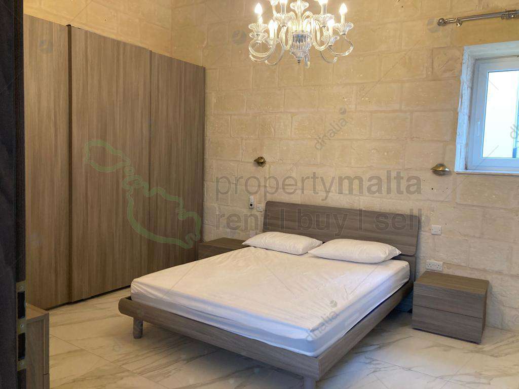 A converted house of character in Gharghur comprising an entrance hall, dining/living room, separate kitchen, cellar, three double bedrooms, main with en suite facilities, two bathrooms, a one-car garage included and a three-car garage available as an option. The property includes solar heaters and can be rented out furnished or unfurnished.