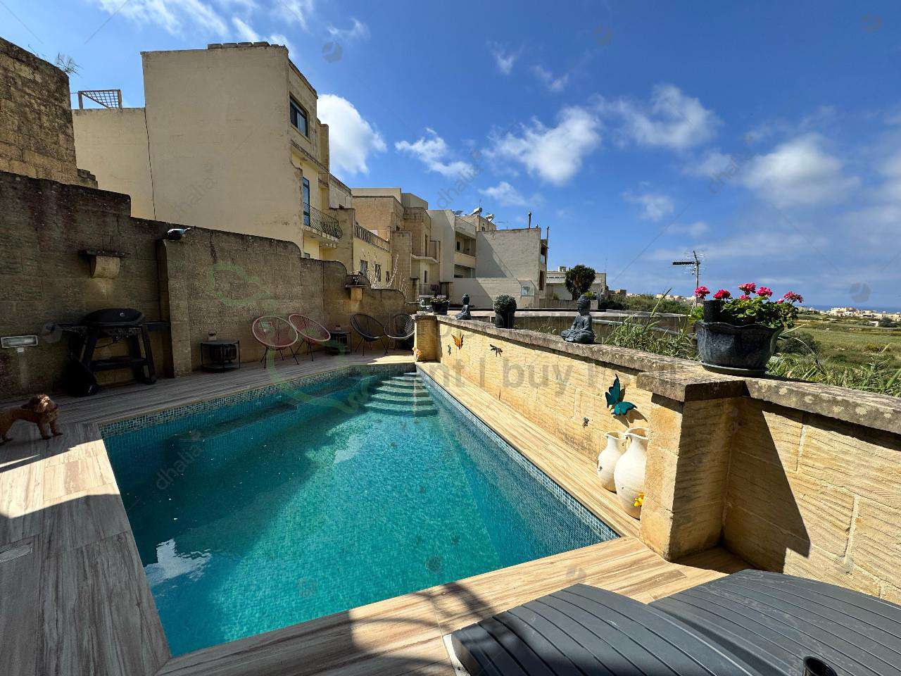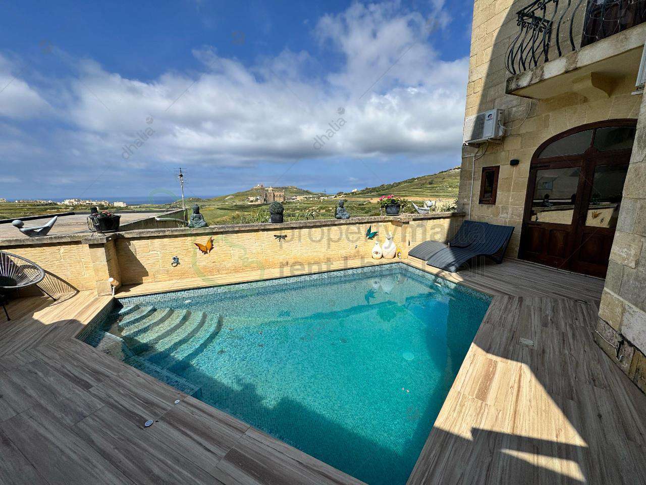 Tucked away in the charming village of Gharb, this exceptional house of character masterfully blends timeless Gozitan architecture with contemporary luxury. Every detail has been thoughtfully designed to offer comfort, style, and a sense of serene island living. On the ground level, you’ll find a beautifully appointed kitchen, a separate, cozy living area perfect for entertaining or relaxing, and a guest bathroom for added convenience. Step outside to your private haven — a spacious decking area and a pristine swimming pool invite you to unwind under the Mediterranean sun. The first floor features two generously sized double bedrooms, both with elegant en-suite bathrooms. One of the bedrooms also boasts a walk-in wardrobe, adding a touch of everyday indulgence. The top floor offers a unique and versatile space — currently serving as a stylish bar and living area, this third bedroom comes with its own en-suite and two stunning roof terraces. One of the terraces enjoys breathtaking ODZ views of the iconic Ta’ Pinu Basilica and includes a luxurious Jacuzzi, creating the perfect setting for unforgettable evenings. Adding to the practicality of this property is a basement level that houses a pump room and ample storage space. Whether you’re seeking a sophisticated residence or an upscale holiday retreat, this home captures the essence of Gozo’s charm with modern refinement. Viewings are highly recommended to fully appreciate this rare gem.
