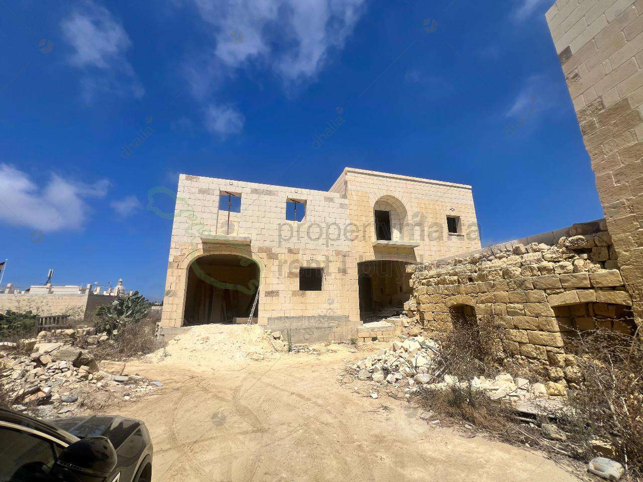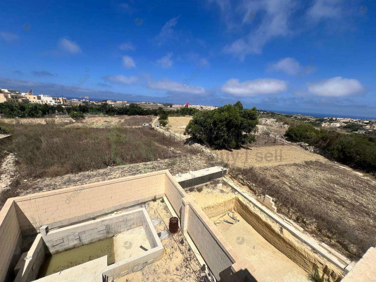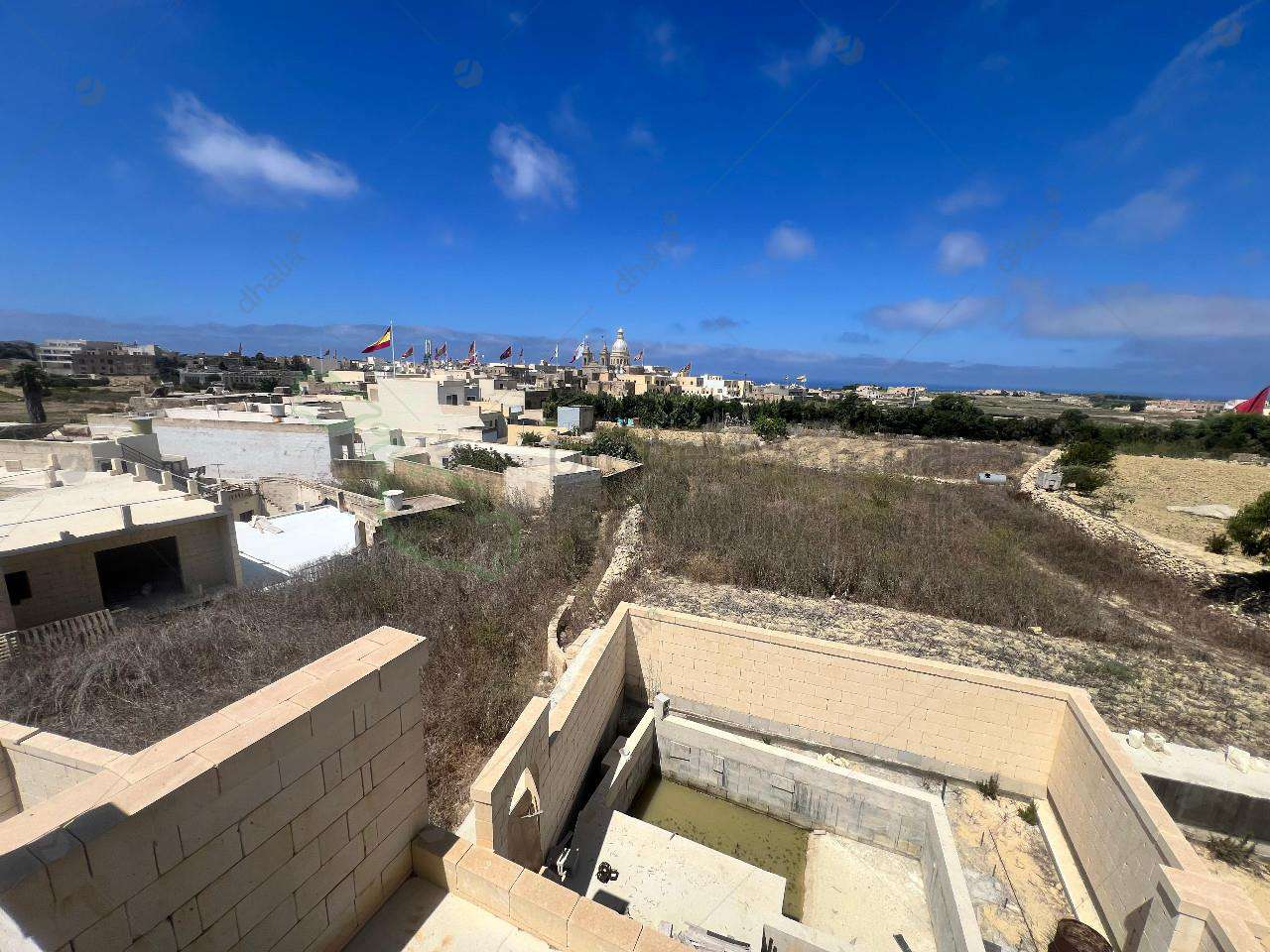 Tucked away in a quiet alley in the heart of San Lawrenz, this charming house of character is set in a very tranquil area. Being sold in shell form, it offers great potential to finish to your taste. On the ground floor, a large hallway leads to a spacious open-plan kitchen/living/dining area, a bedroom with ensuite, a guest toilet, and a generous outdoor space with a swimming pool and terrace enjoying open views. The first floor features four bedrooms, all with ensuites, a front balcony and a back terrace overlooking the pool. On the second floor, there`s another bedroom with ensuite and a large terrace with panoramic views. A rare opportunity in one of Gozo’s most peaceful villages!