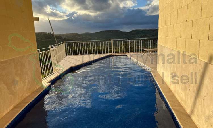 Beautiful house located in Xaghra, situated on the outskirts of the village yet close to all amenities. The property consists of a combined kitchen/dining/living room all leading to the heated swimming pool with a good sized decking area while enjoying amazing views, four bedrooms and three bathrooms. Property also comes with a separate flatlet at ground level comprises of two bedrooms and two bathrooms. Property is also equipped with air-conditioned.