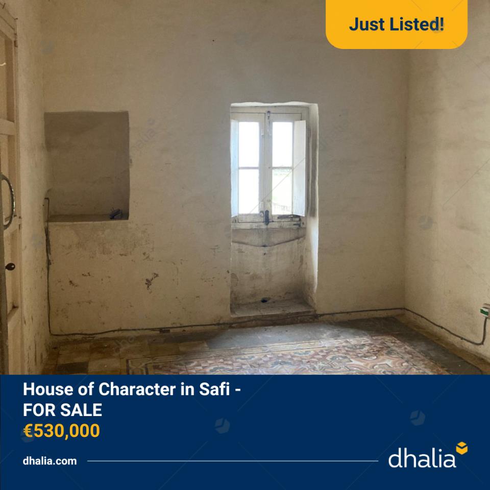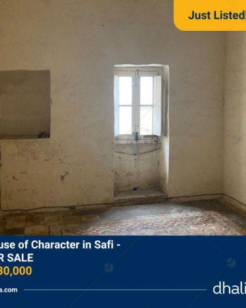 A 400-year-old House of Character located in Safi on a plot of 70 square metres, it consists of a small corridor, two rooms, a small kitchen, a toilet room, and a small yard. On the first floor, there is another bedroom and a terrace. The property is being sold unconverted and is not suitable for development.
