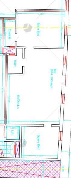 An elevated ground-floor two-bedroom maisonette, measuring approximately 103 square metres. The layout comprises an open-plan kitchen/living/dining area, main bathroom, master bedroom with ensuite and a spare bedroom. Optional garages are available.