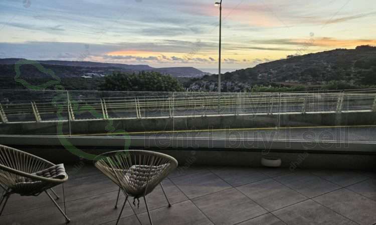 A luxury living in this ultra-modern three-bedroom, two-bathroom elevated maisonette located in the picturesque town of Mellieha. Nestled close to local amenities and some of Malta`s most beautiful beaches, this property offers both convenience and serene coastal charm. This maisonette features an expansive front porch that boasts breathtaking views of the lush valley and sparkling sea, perfect for enjoying stunning sunrises and sunsets. The interior is designed with a bright, open-plan layout that seamlessly connects the living, dining, and kitchen areas, creating an inviting and spacious environment. This property also comprises two spacious bedrooms, two modern bathrooms (one of which is an en suite), an office/study room which can also be used as a third bedroom, a utility/storage room, a separate laundry room for added functionality, and a sizeable back yard. The property is fully air-conditioned and an optional lock-up garage is also available.