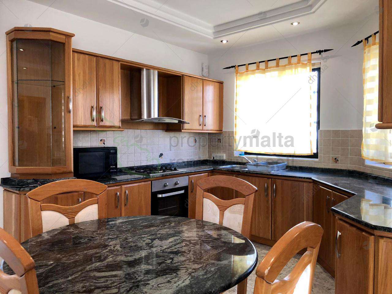 Bright and spacious, three-bedroom air-conditioned maisonette in Mellieha. The layout offers a kitchen, dining and living area, box room, two double bedrooms and a single bedroom, family bathroom and an ensuite bathroom with the main bedroom. Complementing this property is the use of full use of roof ideal for entertaining.