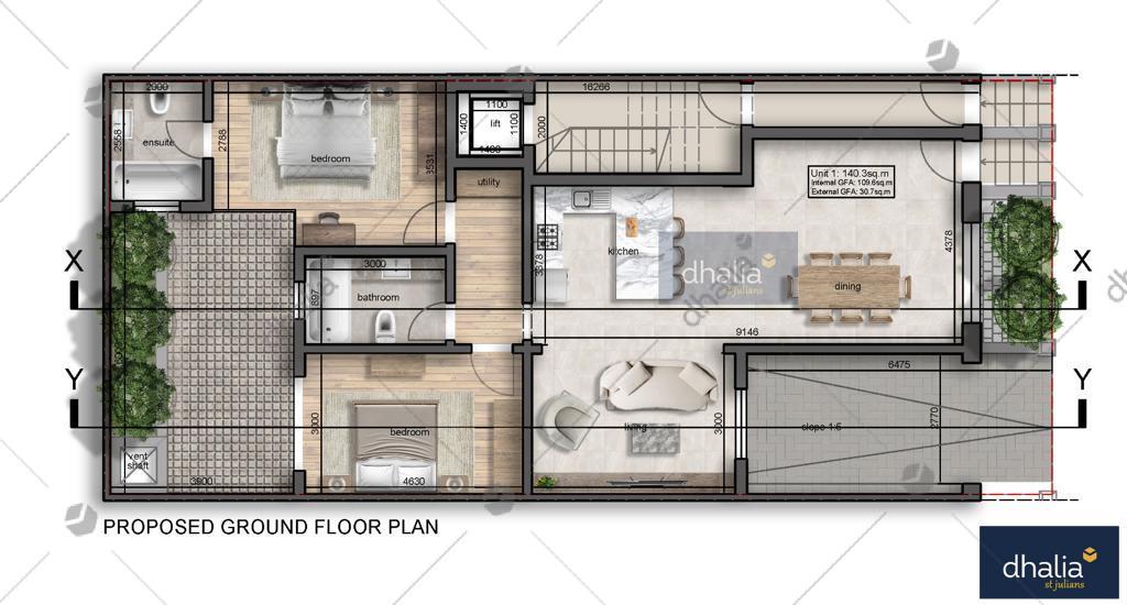 New development featuring two/ three bedroom apartments. The typical layout consists of a large open-plan kitchen/ living and dining area, two/ three bedrooms (one with en suite facilities), the main bathroom, and a nice front balcony. The property is being sold finished excluding bathrooms and doors. Optional basement level one/ two-car garages are available within the same block, starting from €30,000. Contact agent for further more information.