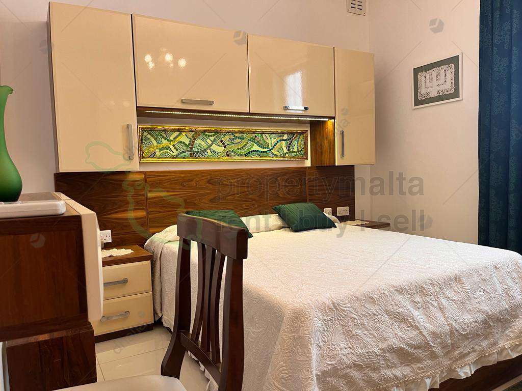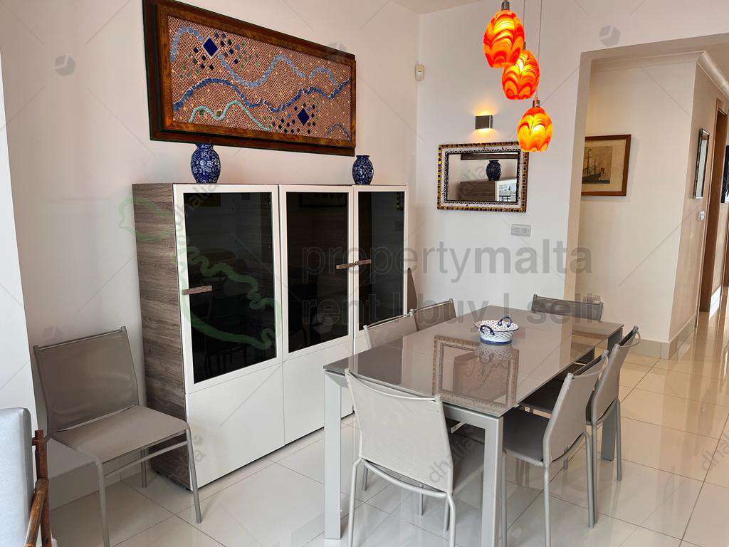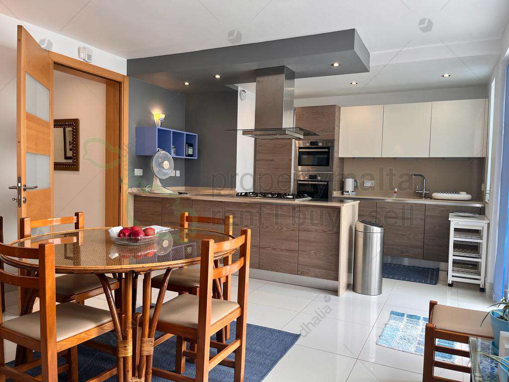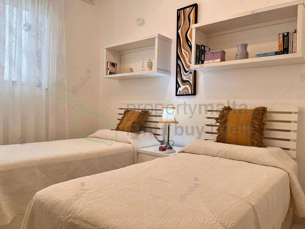 Qawra – Luxury finished & furnished maisonette, located just a few minutes walk to the Qawra Promenade, restaurants & coffee shops. Upon entering one finds an open plan with a formal dining & living room boasting lots of natural light and leading to a spacious front terrace, the master bedroom, spare bedroom (comprising two single beds), a single bedroom, two guest shower rooms, laundry room and an open plan kitchen/dining room leading to another back terrace equipped with outdoor kitchen / BBQ area & furniture. The maisonette is further complemented by distance sea views. To compliment this property, which is the perfect place to call home, one will enjoy the benefits of an RO System, Hydro Massage Shower, Bulgar Alarm, fully air-conditioned & much more. A perfect home away from home. Viewings are highly recommended!