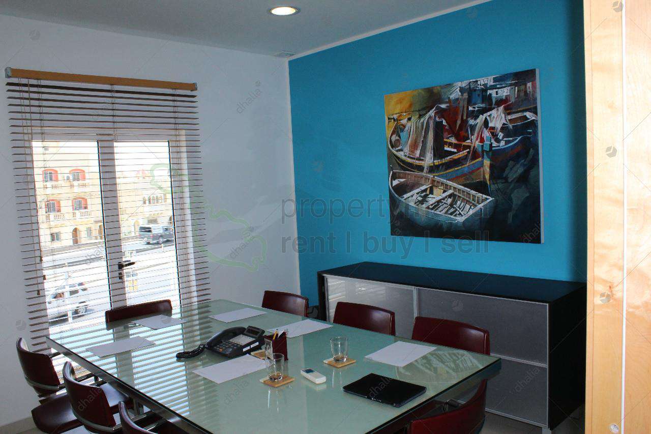 Ready to move into is this prominentaly located office block measuring approximately 500 sqm in floor area. The layout consists of four floors, each with kitchenette and bathrooms. At ground floor is a two car garage which leads to a canteen/ lecture room connecting to a backyard equipped with projector which can easily be utilized as additional office space. The first floor includes a reception area, two boardrooms, a large office and a private office. On the second and third floors one finds a large open plan office which can accomodate up to 20 desks, a private office and a boardroom/ executive`s office. On the fourth floor is a slightly smaller open plan office that can accomodate up to 10 desks and a boardroom/ director`s office overlooking a spacious terrace. This block is finished to very high standards and is fully equipped with alarm system and air conditioning throughout. Contact agent for viewing.