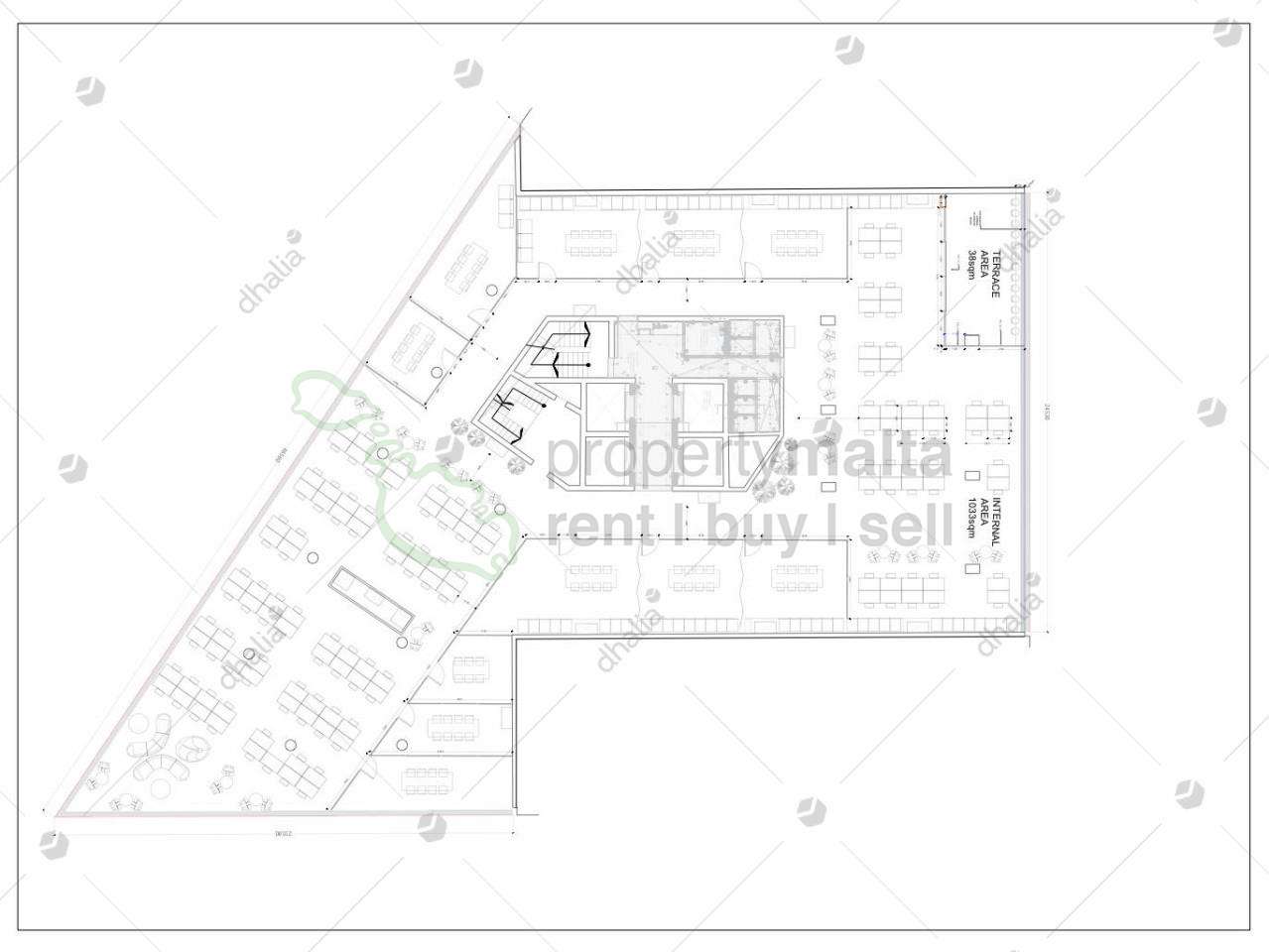 A large office measuring approximately 1071 square metres and forming part of a newly finished office block in St Julians close to the Mercury Tower.