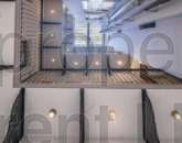panoramic lift, a private interconnecting one-car garage, structured electrical cabling, full air-conditioning, and a central open-air skylight that fills the interior with natural light. The ground floor welcomes you with a professional reception area, followed by two back-office rooms and an internal yard that houses the panoramic lift. This level also includes toilet facilities and access to a private one-car interconnecting garage. A staircase leads both down to the basement—currently set up as a fully equipped kitchen and up to the upper floors. Each of the three main floors above spans approximately 125 square meters and