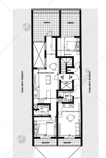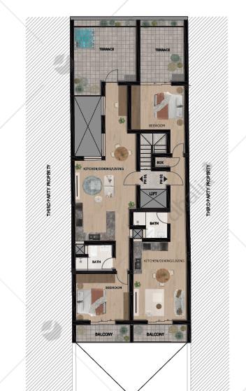 A one bedroom penthouse being sold in shell form with an optional finishing package of €20,000. Layout comprises of an open plan kitchen/living/dining leading to a balcony, main bathroom , a boxroom, master bedroom, leading to a spacious terrace.