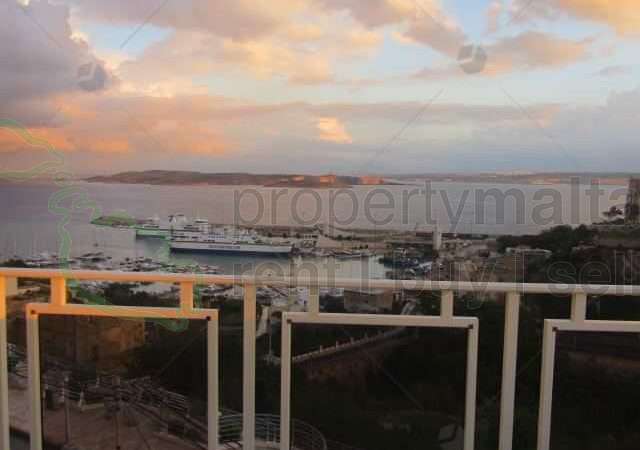 This penthouse enjoys magnificent views of Mgarr, the port, Comino and Malta from the dining area and the lounge with a spacious south facing balcony. Entrance hallway leads to a kitchen, good size bathroom, with shower and bath and three double bedrooms.