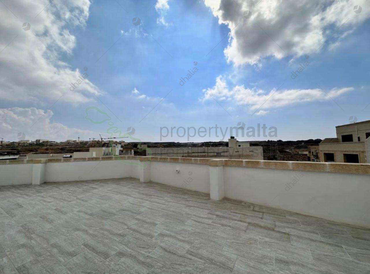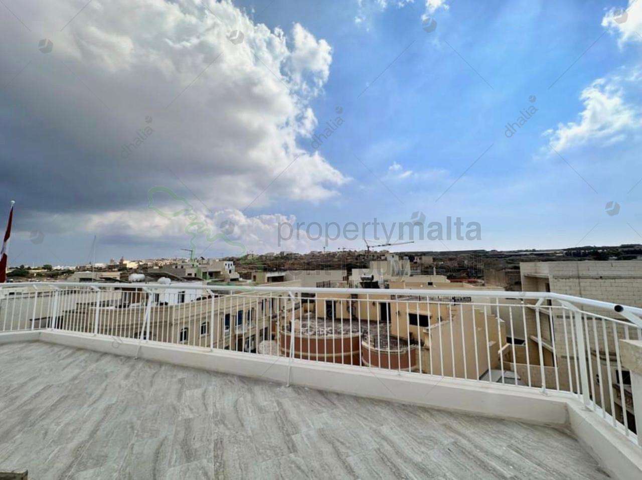 This penthouse is located in a peaceful part of Munxar. It comprises a combined kitchen/living/dining area that opens onto a large terrace with a breathtaking view, two bedrooms, a main bathroom and comes with access to a lift.