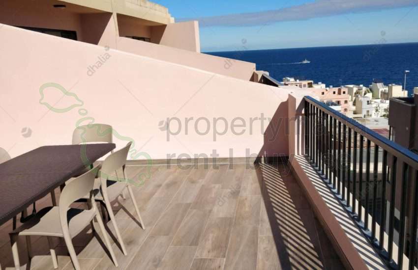 A cosy penthouse enjoyng fantastic views of the Channel and Comino from the large terrace. Large open plan kitchen, dining, living area, two double bedrooms with back balcony and a main bathroom. Available for long let.