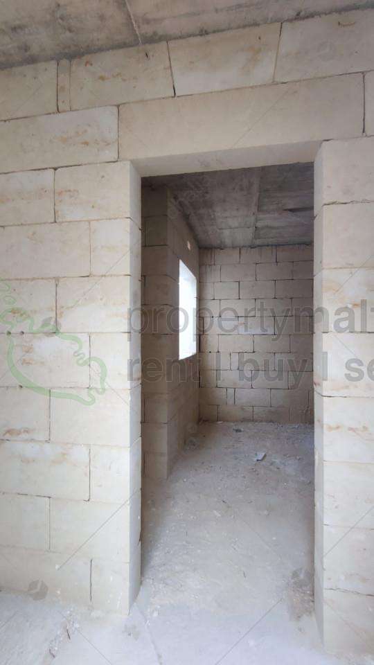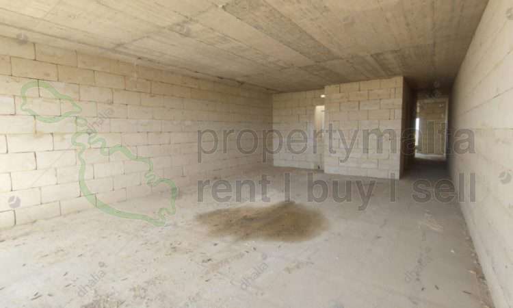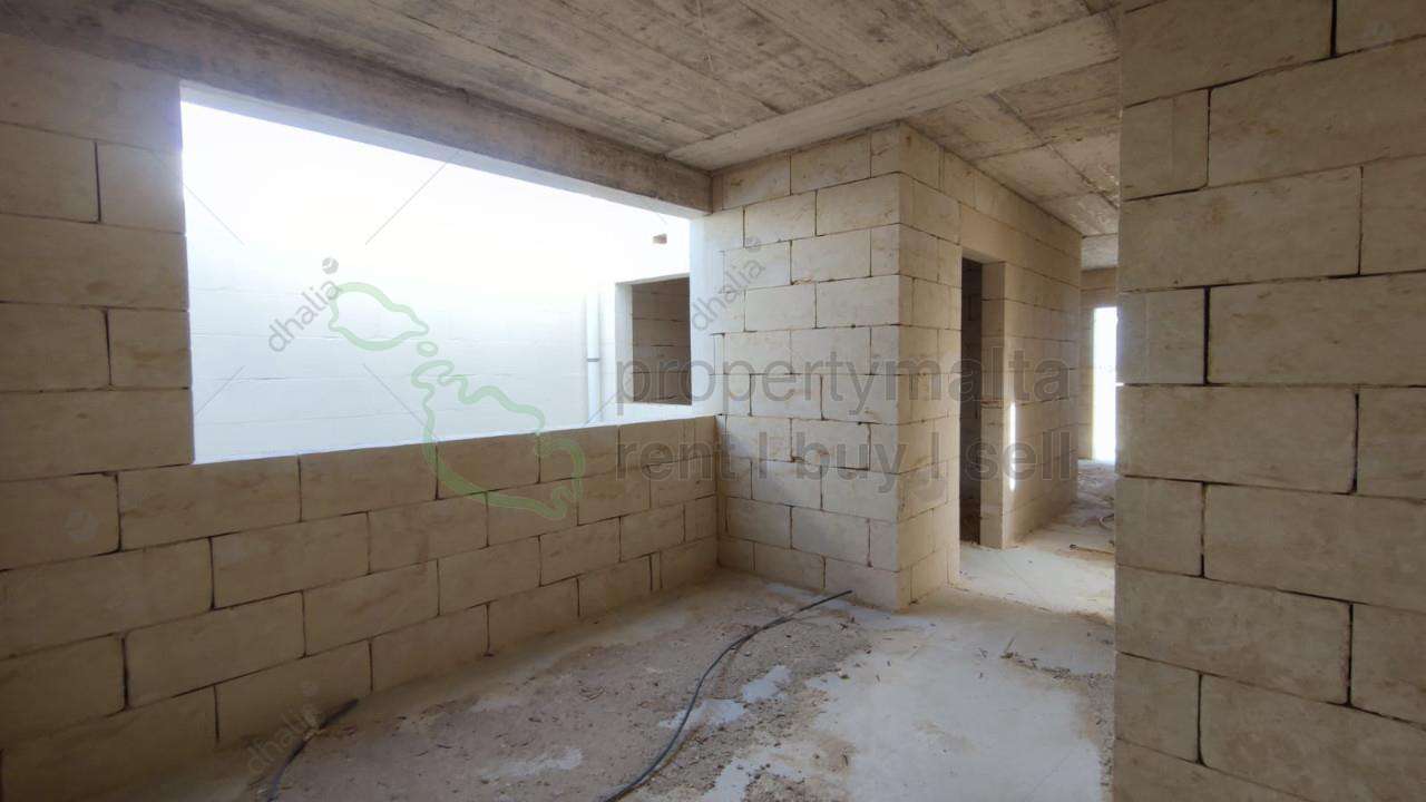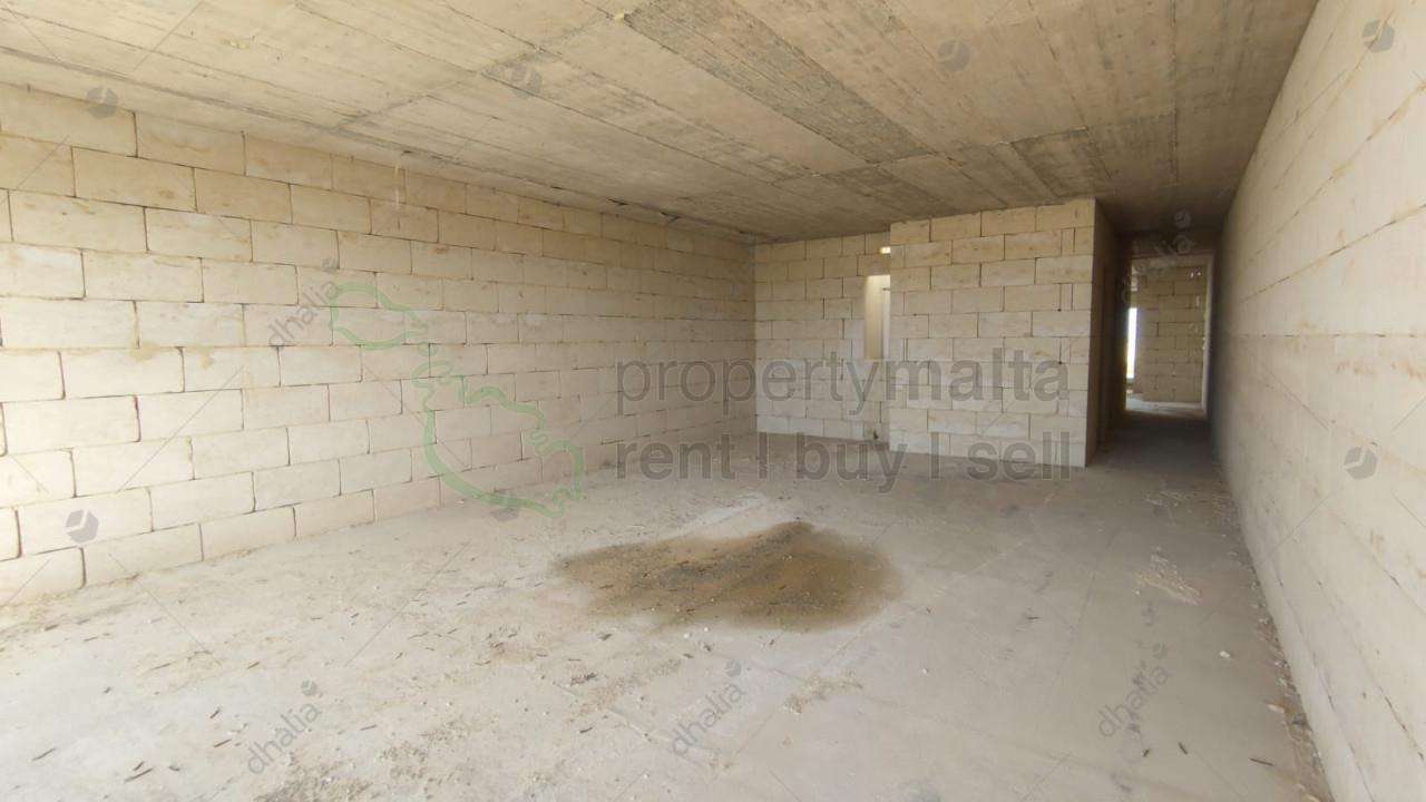 Penthouse for sale in Xewkija, Gozo, featuring 3 bedrooms, 2 bathrooms, an open-plan living area, a front terrace, and a spacious back balcony. Offered in shell form with finished common parts, this property includes full airspace, providing potential for future development or a rooftop terrace. Ideal for those looking to customize their home in a peaceful yet central location.