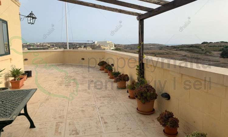 One-of-a-kind penthouse situated in the quiet village of Kercem consisting of a combined kitchen/living/dining, two bedrooms both are with ensuite and the main bathroom leading to a huge terrace having amazing country views and Gozo views. Property is served with a lift.
