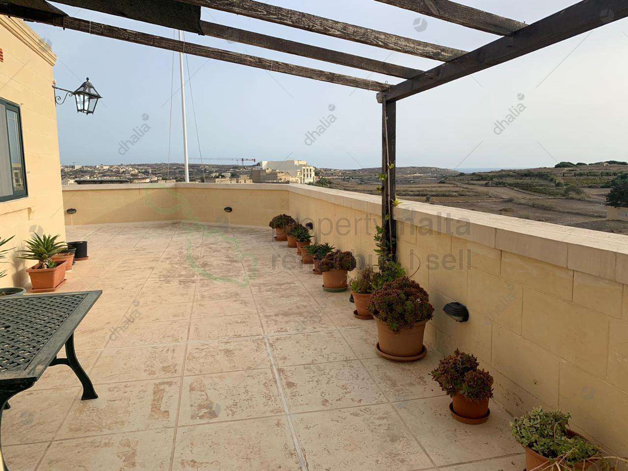 One-of-a-kind penthouse situated in the quiet village of Kercem consisting of a combined kitchen/living/dining, two bedrooms both are with ensuite and the main bathroom leading to a huge terrace having amazing country views and Gozo views. Property is served with a lift.