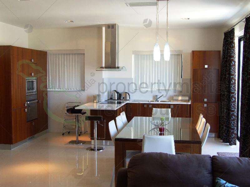 An impressive penthouse enjoying 270degress of views of Marsalforn bay from most rooms and especially from the good sized terrace. Layout is in the form of entrance hallway leading to three double bedooms, ensuite, main bathroom, open plan fully fitted kitchen, dining and living. Property is fully air conditioned and has lots of extras. Optional one car garage.