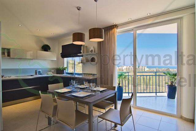 This project includes a number of apartment blocks adjacent to each other, sharing the same aesthetic design and comprising approximately 12 individual units in each block. This units features an open plan kitchen/dining/living room, three bedrooms and two bathrooms. All the residents within this development can enjoy the facility of a communal swimming pool which is part of this development and is situated on high grounds, commanding sweeping views, open fields and distant sea views beyond.