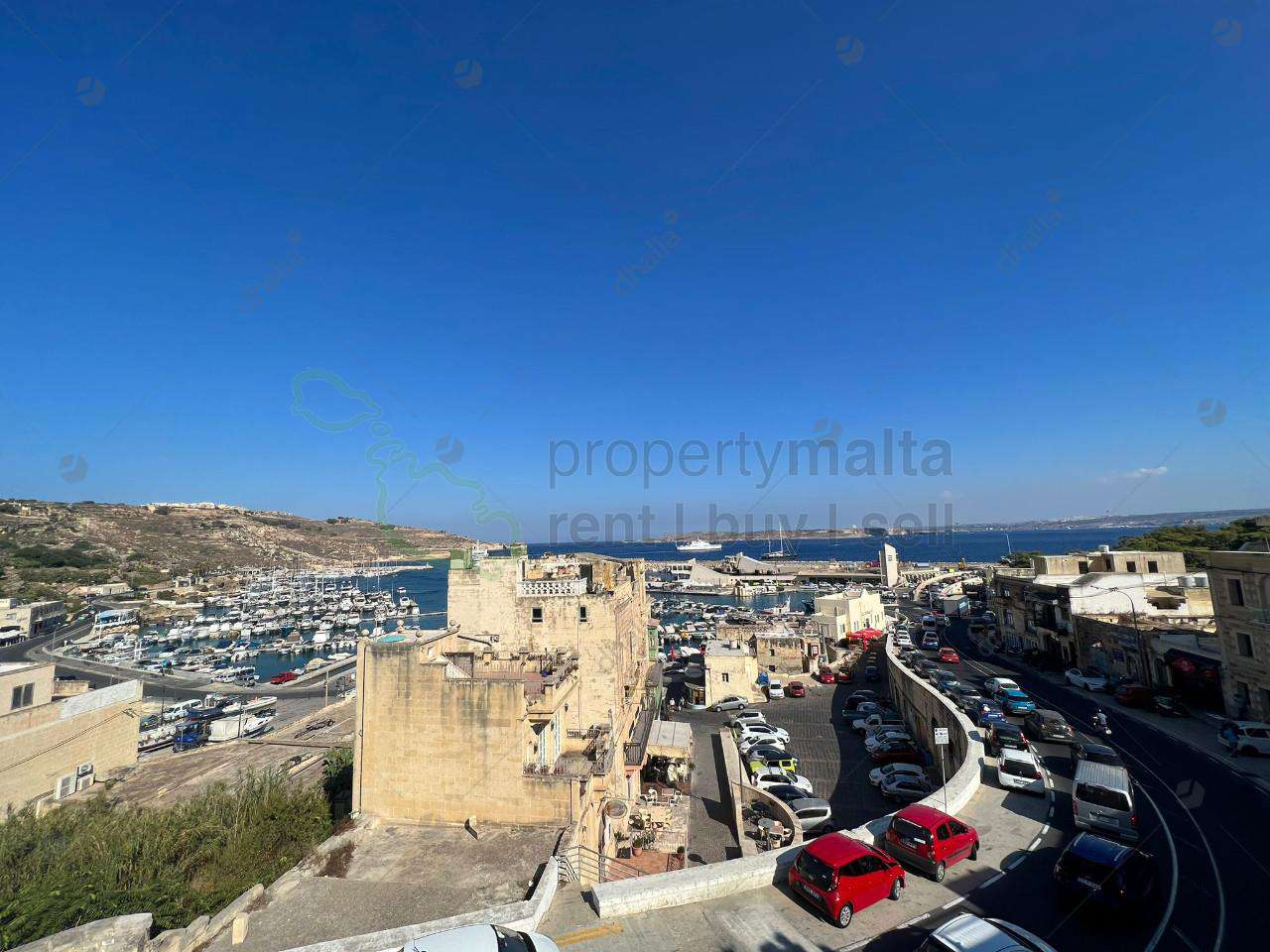 Unique one bedroom property situated just above Mgarr Marina . Upon entrance you find the open plan kitchen/living/dining which leads to the large terrace overlooking the spectacular views, the bedroom with a back balcony having country views and a main bathroom.
