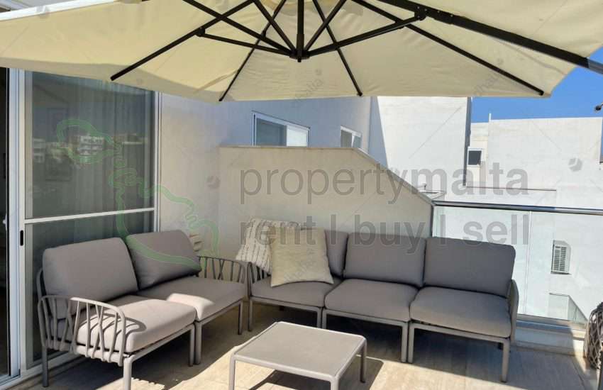 Luxuriously finished penthouse enjoying both sea and country views situated less than 10 minutes walk from St Thomas Bay. Layout comprises of a kitchen/living/dining area, two bedrooms main with ensuite, a bathroom and has both front and back terraces. This property is on the fourth floor but is served with lift. It is fully furnished with modern furniture.