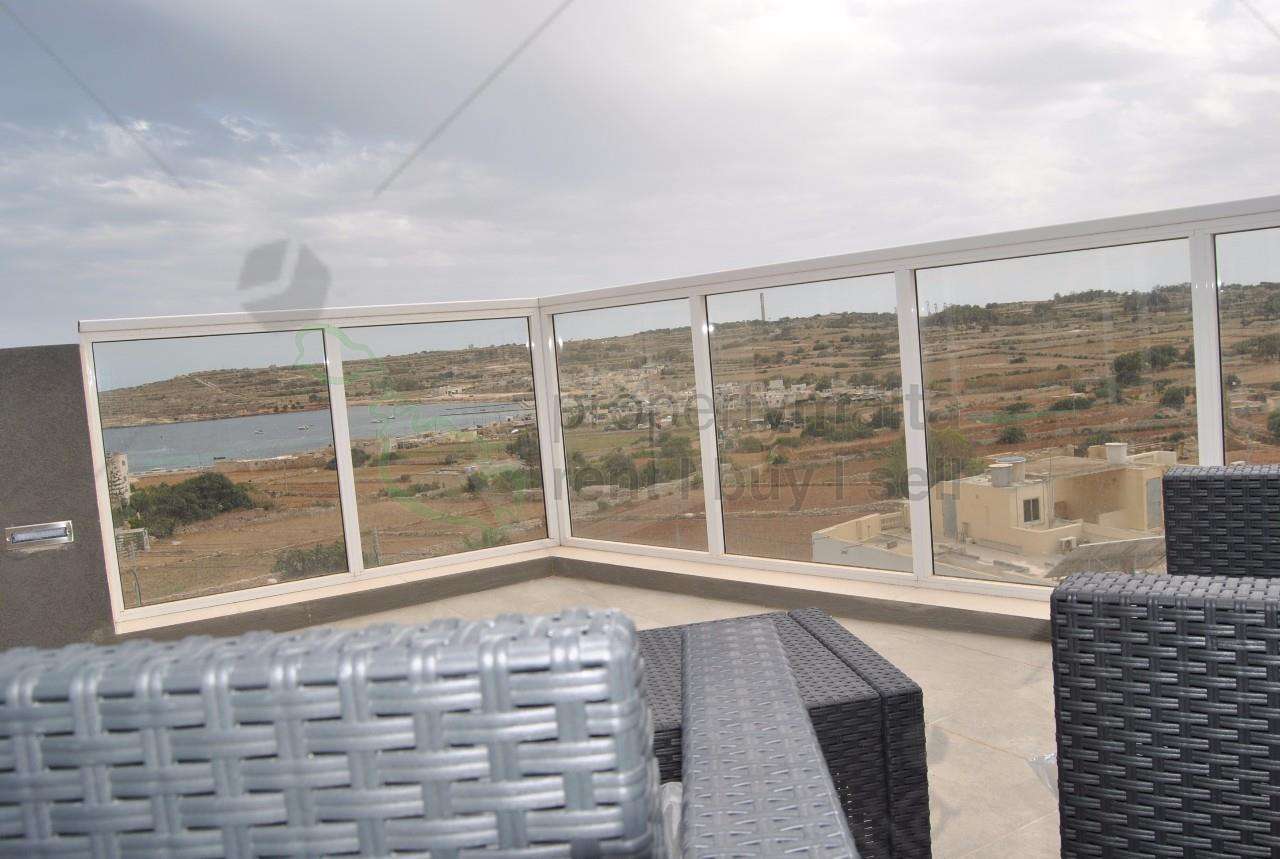Luxuriously finished penthouse enjoying both sea and country views situated less than 10 minutes walk from St Thomas Bay. Layout comprises of a kitchen/living/dining area, two bedrooms main with ensuite, a bathroom and has both front and back terraces. This property is on the fourth floor but is served with lift. It is fully furnished with modern furniture.