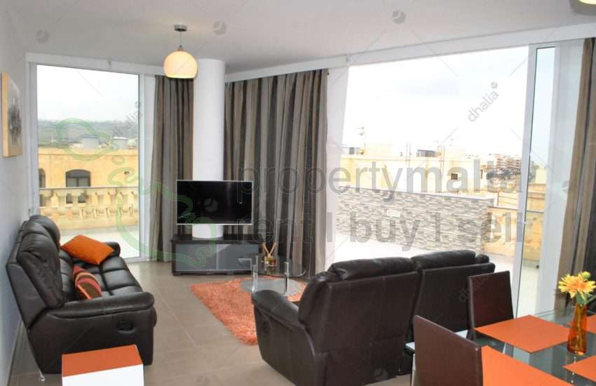 Highly finished and fully furnished penthouse in a very quiet area in Marsascala.The property consists of an open plan with a fitted kitchen, living/dining area leading to a