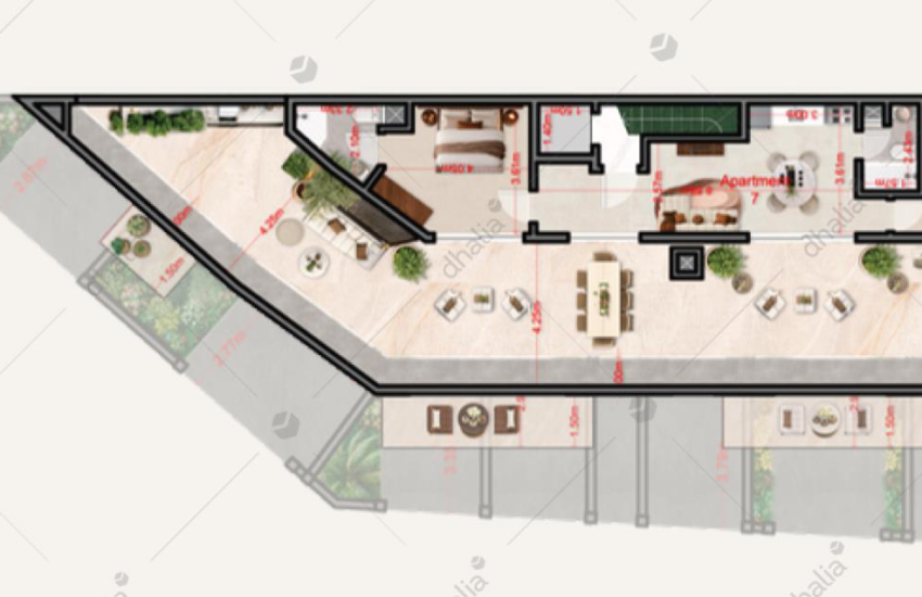 A brand new and highly finished three-bedroom penthouse forming part of a small block. This fourth-floor accommodation layout measures approximately 142 square metres and consists of an open-plan kitchen/living/dining area leading to a front terrace, main bathroom, three bedrooms, and a back terrace. Property also includes airspace.