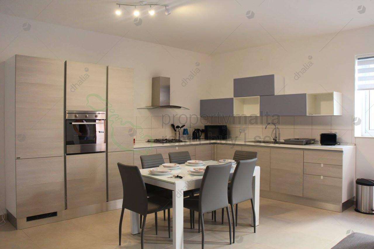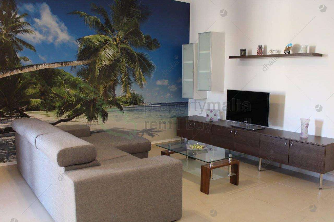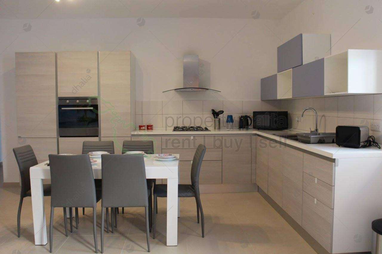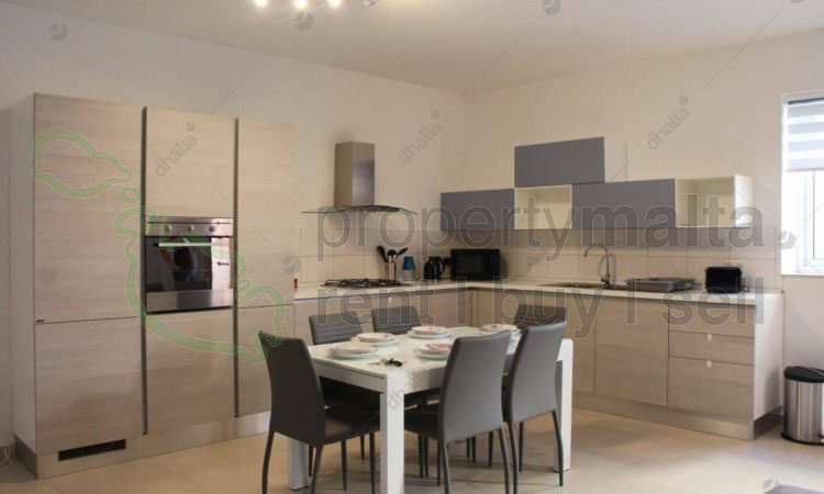 Qawra – larger than usual designer finished superb three-bedroom Penthouse/Apartment including a garage. Apartment has a spacious layout comprising a kitchen /living/ dining, three bedrooms, master with en-suite and main bathroom. The property also comprises a larger than usual laundry room, a small office area in one of the bedrooms and also two back terraces. The property is extremely well lit, flooded with natural light in all rooms and is very close to all amenities and within walking distance of the sea.